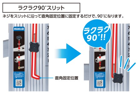 ネジをスリットに沿って直角固定位置に固定するだけ!