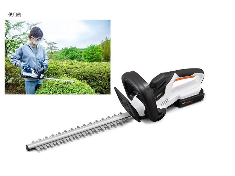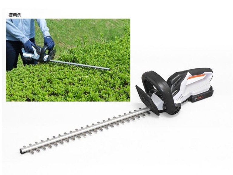 コードレスで軽量、ハイパワーの充電式ヘッジトリマーです。刈り込み幅530mmのロングブレードで広範囲の作業が可能です。生垣や庭木のお手入れに最適です。取り回しやすい両刃タイプです。安全なダブルロック付きです。形を整える刈り込みもできます。面で均一に刈り込めるため、美しい見た目に仕上がります。