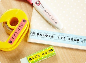 何かと慌ただしい入園・入学シーズン。<br>パパやママの意外な負担となるのが教材や道具への名前付けです。<br>そんな時、「テプラ」を使えば、手元ですぐに名前ラベルが作成可能♪<br>色とりどりのカートリッジが選べて、お好みの絵文字も印刷できるので、<br>ひと目で持ち主がわかるカラフルなラベルが楽々つくれます。<br>
