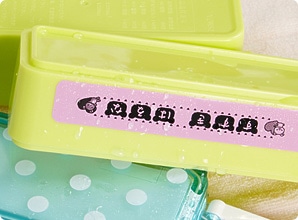 「テプラ」なら、水滴をはじくので水にぬれる場所でも、文字がにじんでしまう心配がありません。