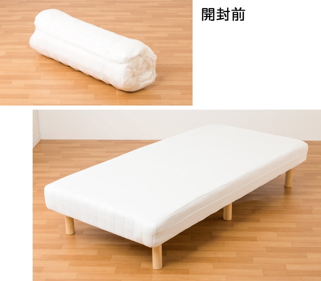 真空のパッケージを開封後、マットレスに桟と脚をつけて完成です。体をしっかり支えるコイルで寝心地も快適!女性でも組み立て簡単♪