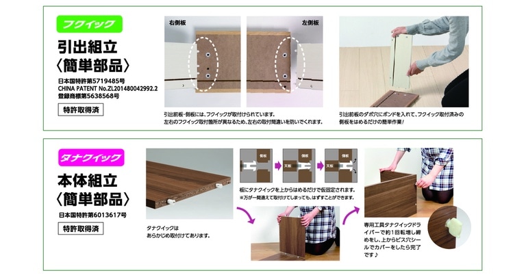 SHIRAIオリジナルのフクイック・タナクイックを使用することで、組立簡単を実現しています。