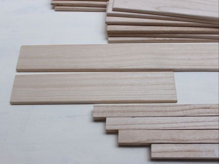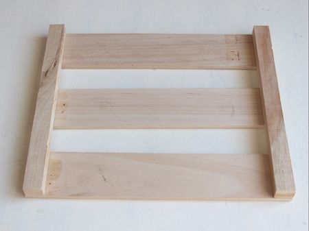 短い板をバランスよく3つ並べて、同じ長さでカットした角材をサイドに設置。