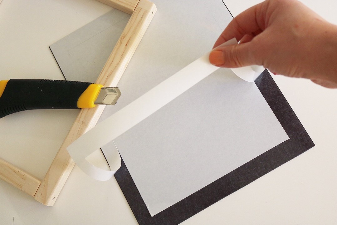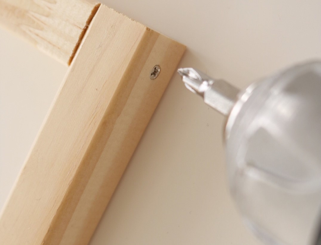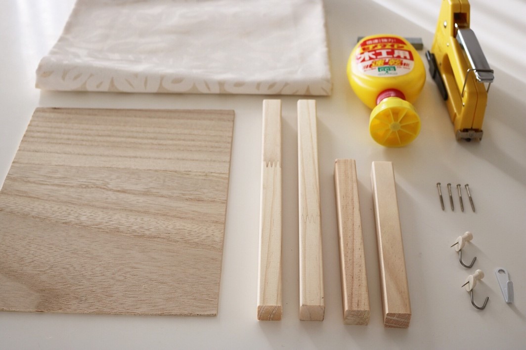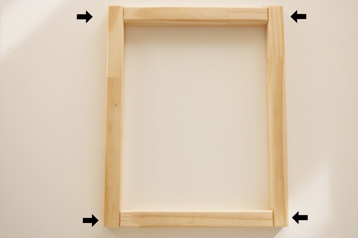 ベニア板の代わりに強力マグネットシートを貼り付けるアレンジも簡単で使い勝手が良いです。粘着付きマグネットシートの両面テープを木枠に合わせて、その部分だけシートを剥がして…