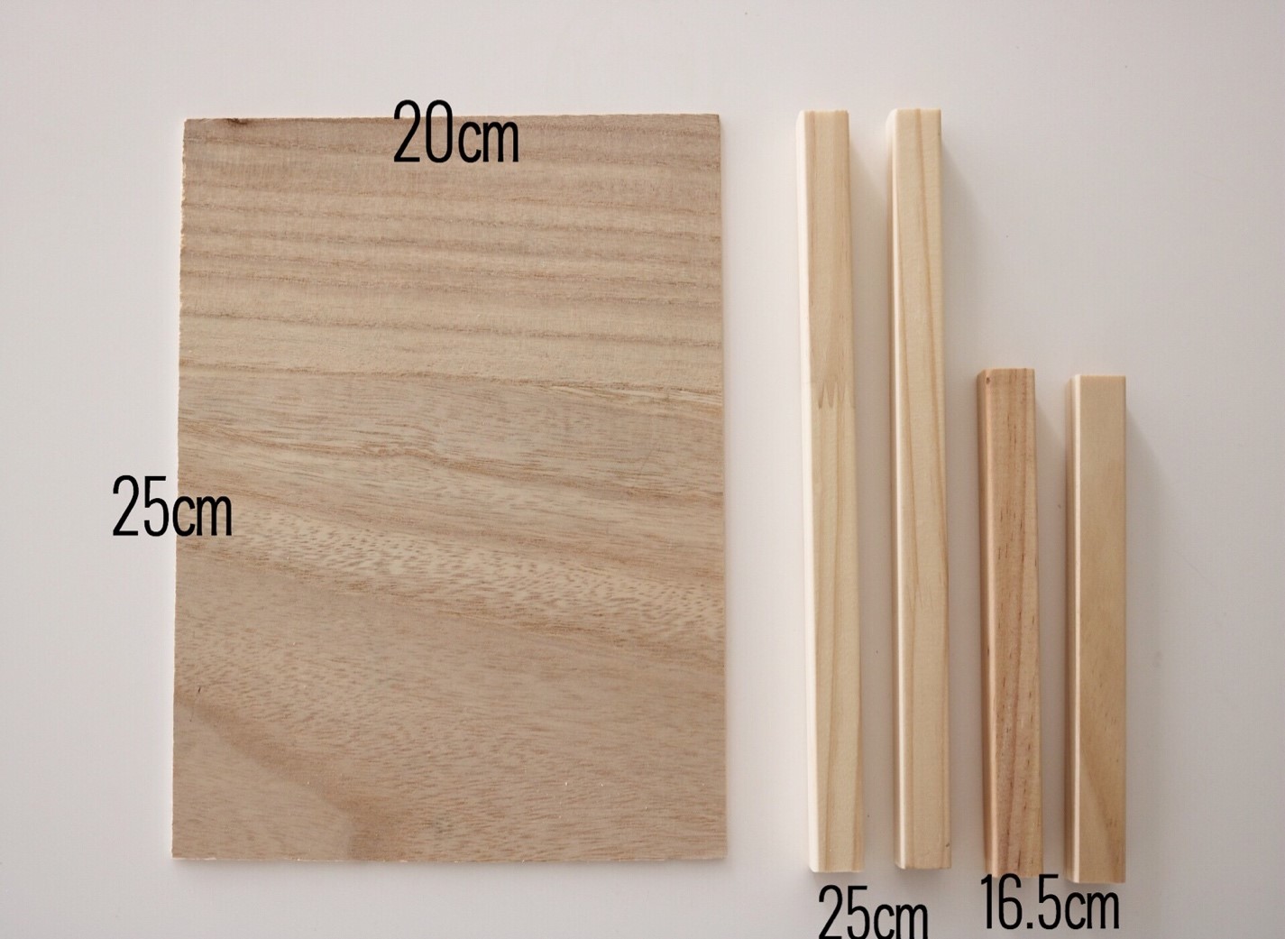 - パイン材の四角い棒(1.8×1.8×91cm)1本を下記サイズにカット