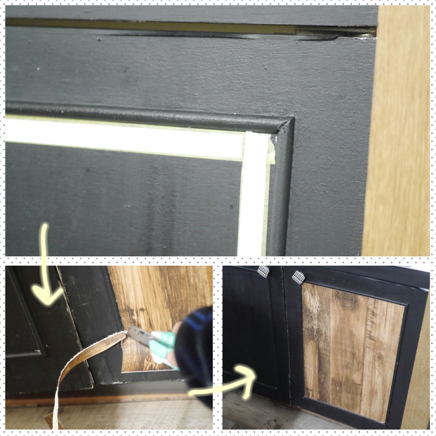 そして今度は黒一色に飽きてしまったので、扉の真ん中にだけ木目調の壁紙を貼って、またまたイメチェンしちゃいました。