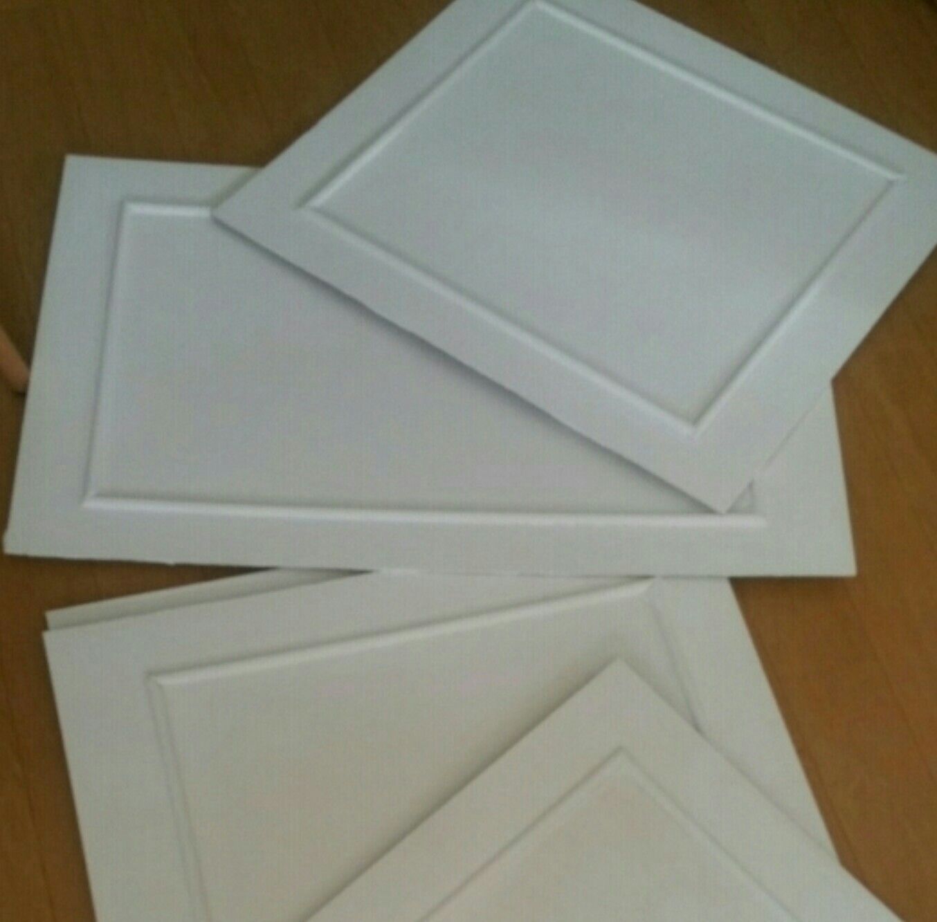 ベニヤ板をホームセンターでカットしてもらい、モールディング風になるように斜め45度にカットした半円工作棒を、ボンドでくっつけ、白のペンキで塗装しました。