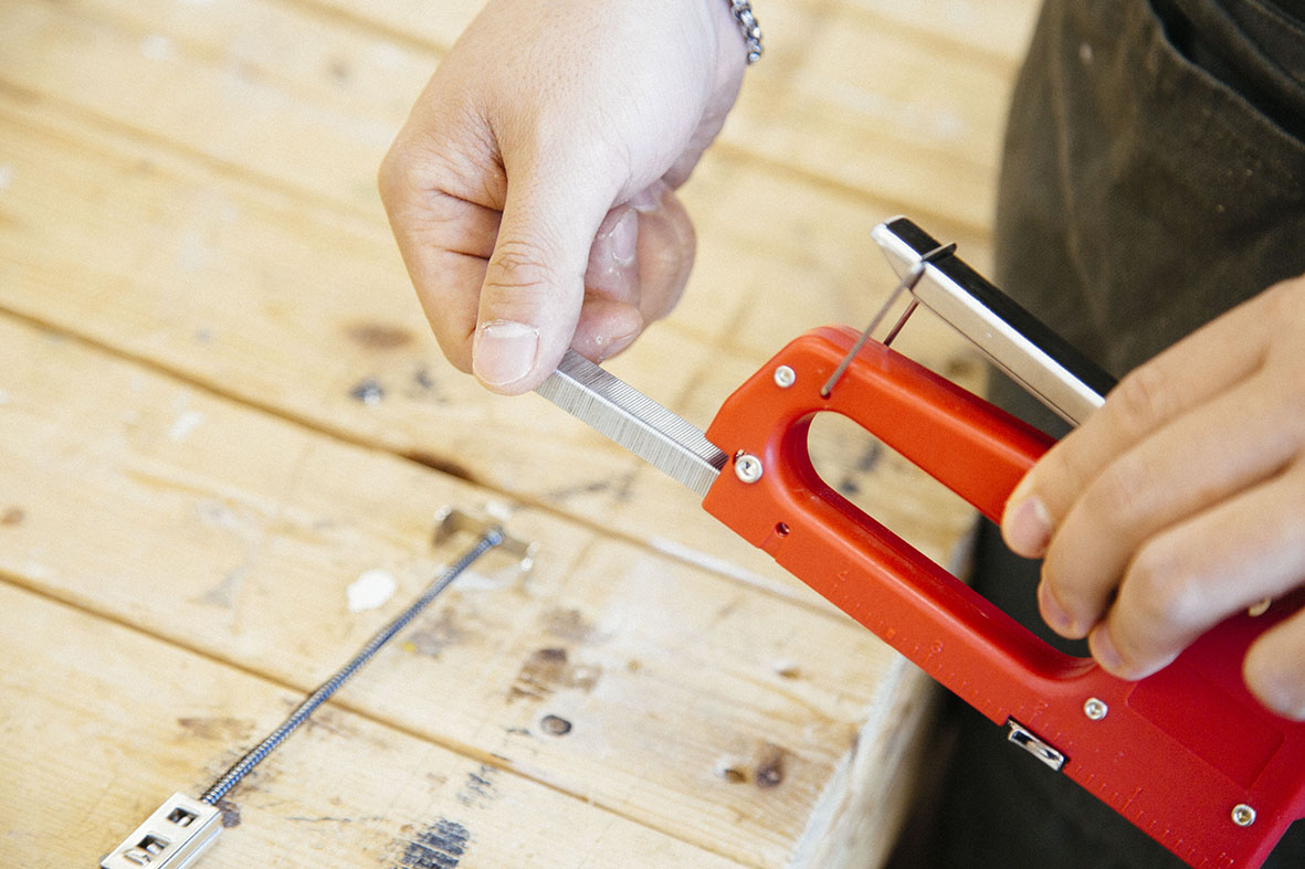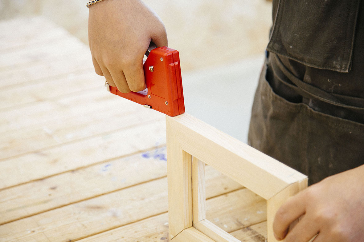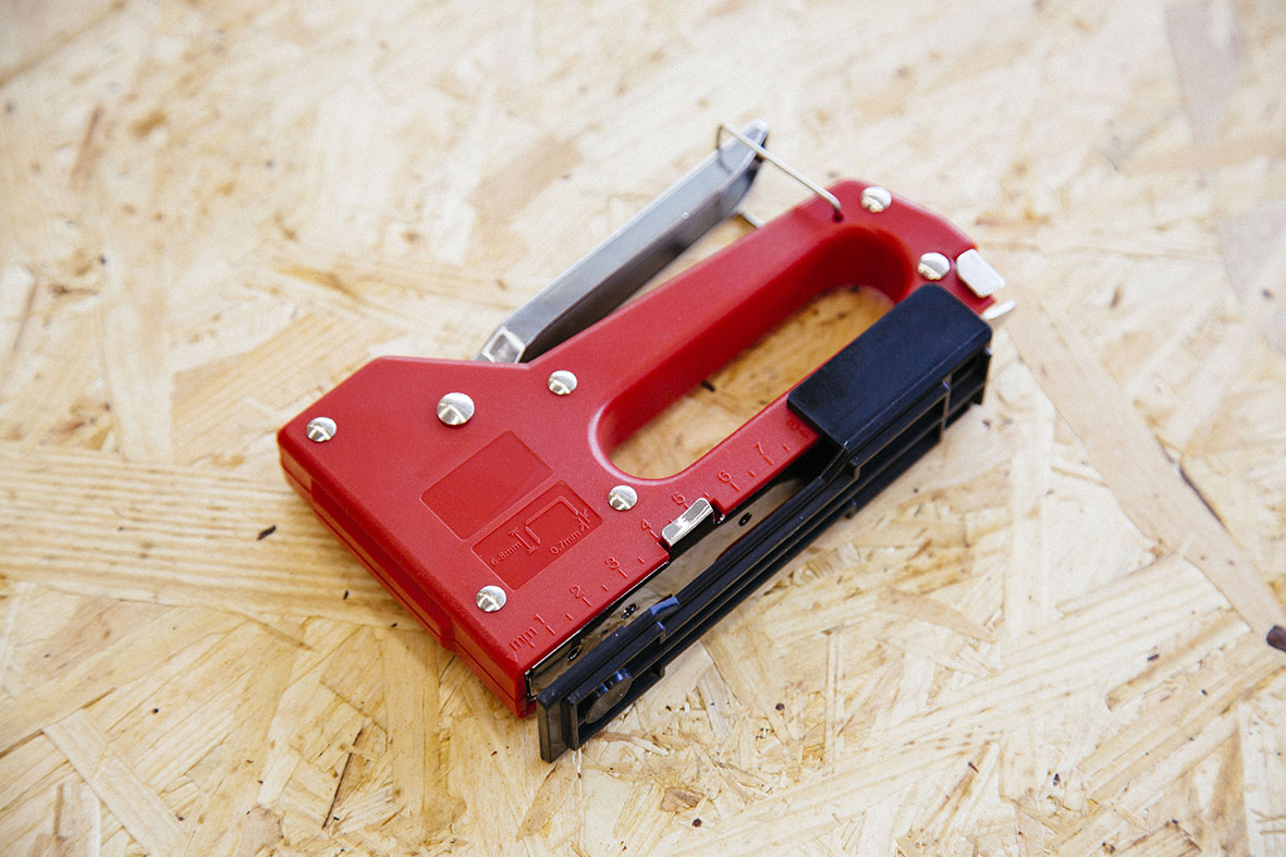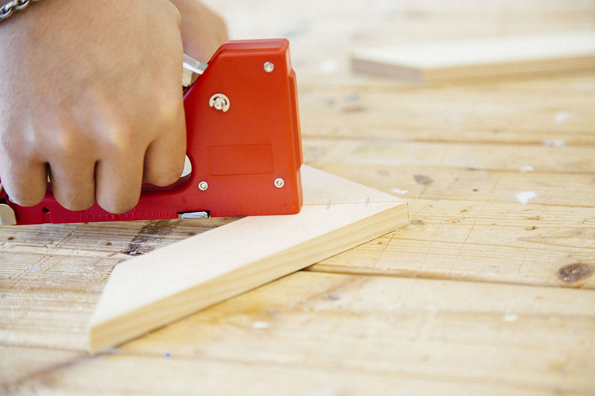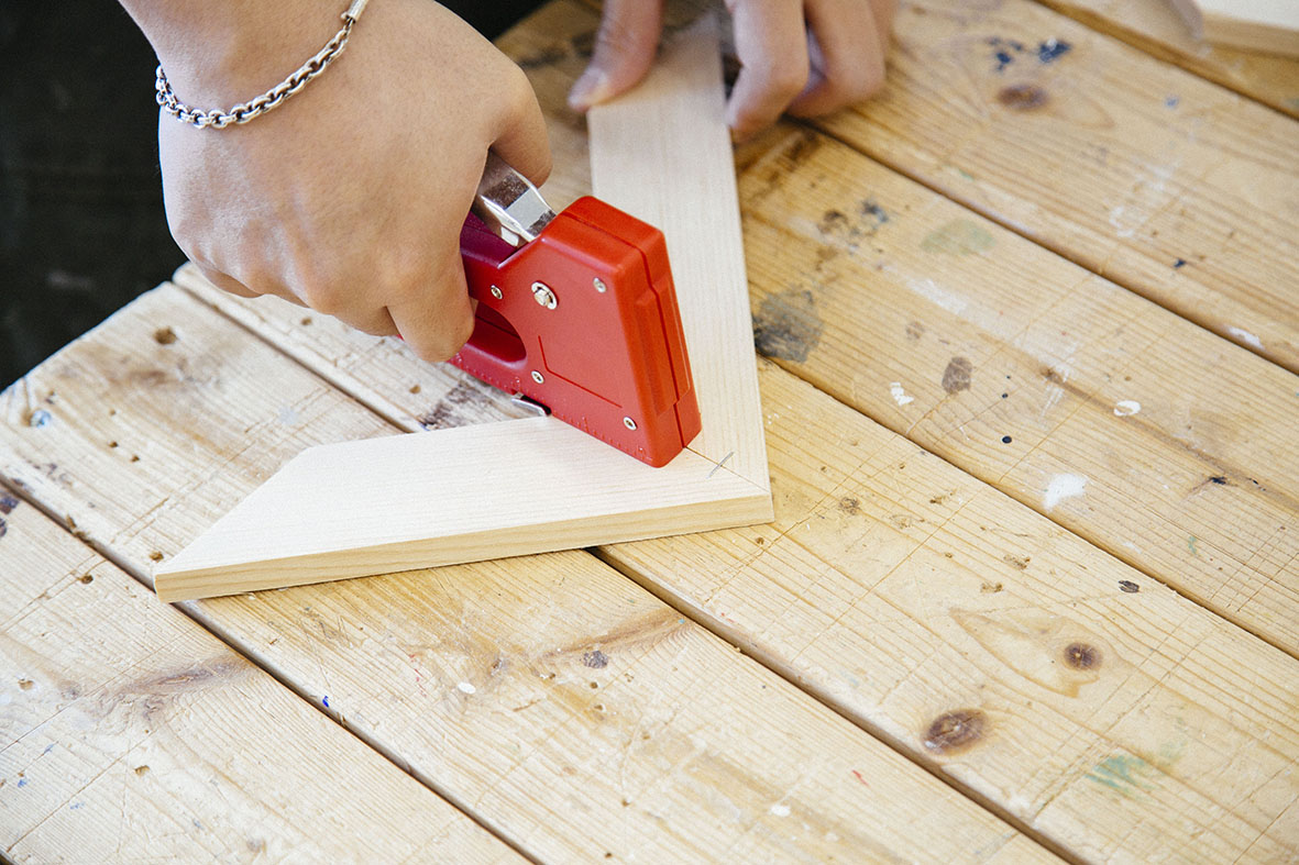 STEP.01 タッカーで木材を固定する