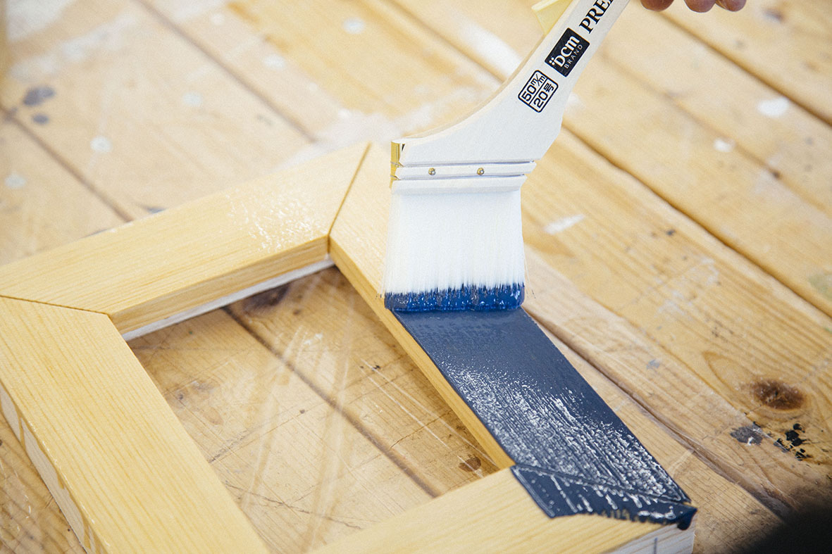 今回はトーンを抑えたブルー系のミルクペイントで塗装しています。塗り終わったら、あとは乾燥を待つだけ。