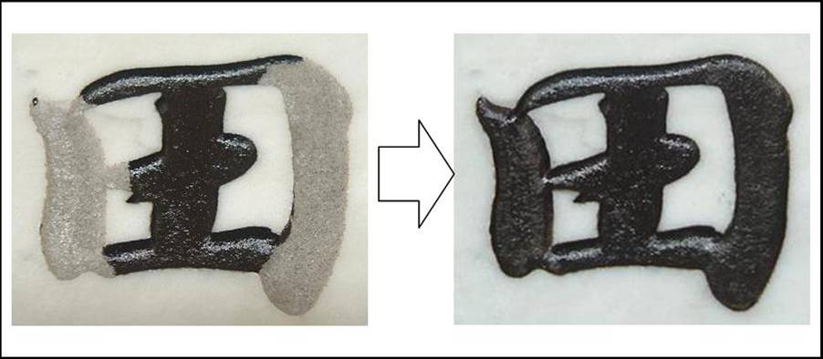 (文字の周囲が欠けたりツヤがなくなっていると、はみ出しの拭き取りができないことがあります)