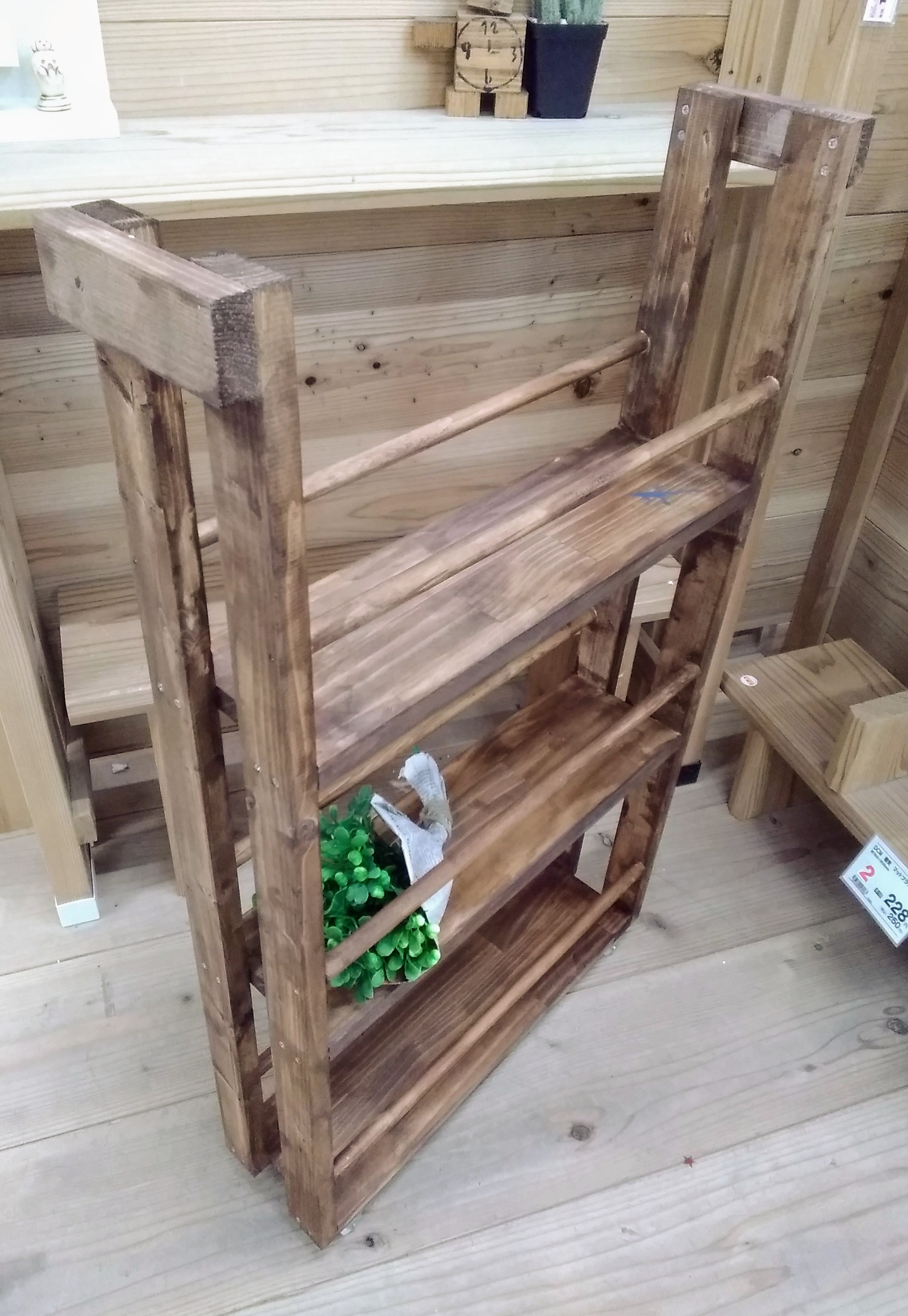 【午後1回の開催です】カット済みの木材を電動工具で組み立て、水性塗料でペイントします。正面のプレートがポイントのナチュラルでシンプルな傘立てです。