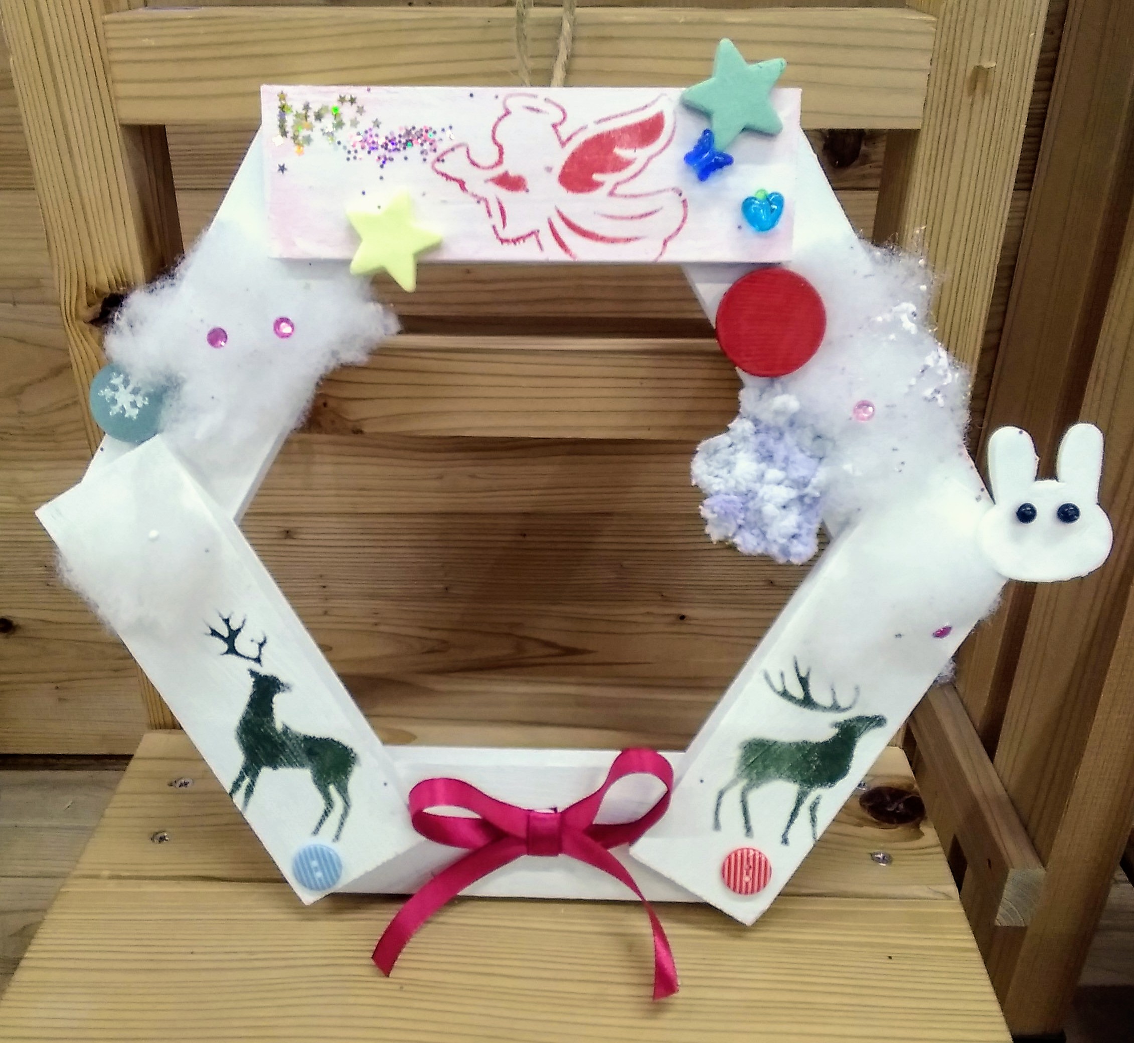 【サイズは木の組み方により異なります】カット済みの木材を水性塗料でペイントし、釘と金づちで組み立てます。ステンシルやパーツの飾りつけで、個性あふれるクリスマスアイテムを作りましょう。子どもも大人も楽しめる作品です。