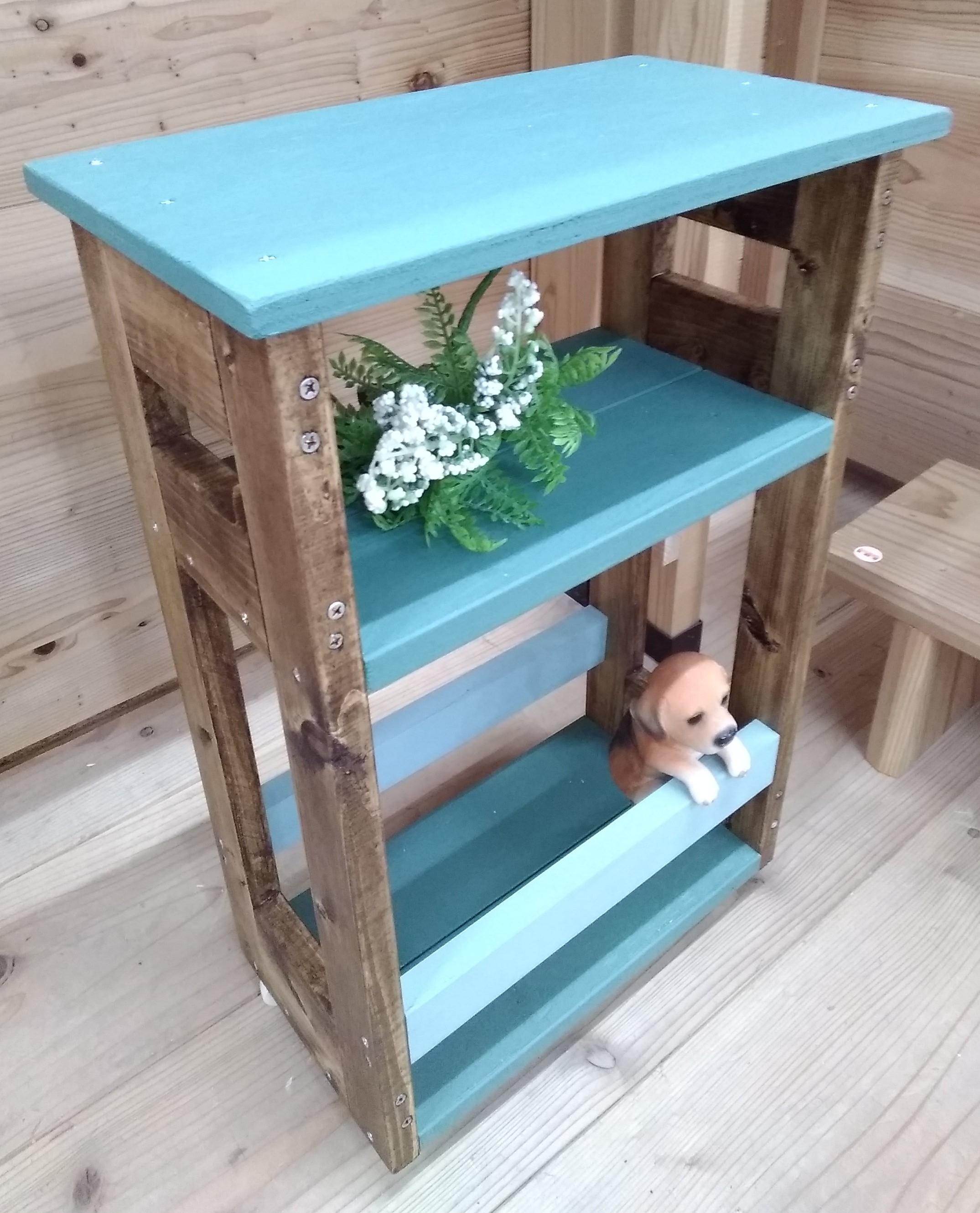 【午前1回の開催です】カット済みの木材を電動工具で組み立て、ワックスと水性塗料でペイントし、ステンシルで仕上げます。防災用品や園芸用品など収納力抜群!玄関先で荷物を置いたり、軽く腰掛けたり、収納もできる実用性の高い作品です。ちょっとしたコツが必要な”蝶番”の取り付け方も学べます。