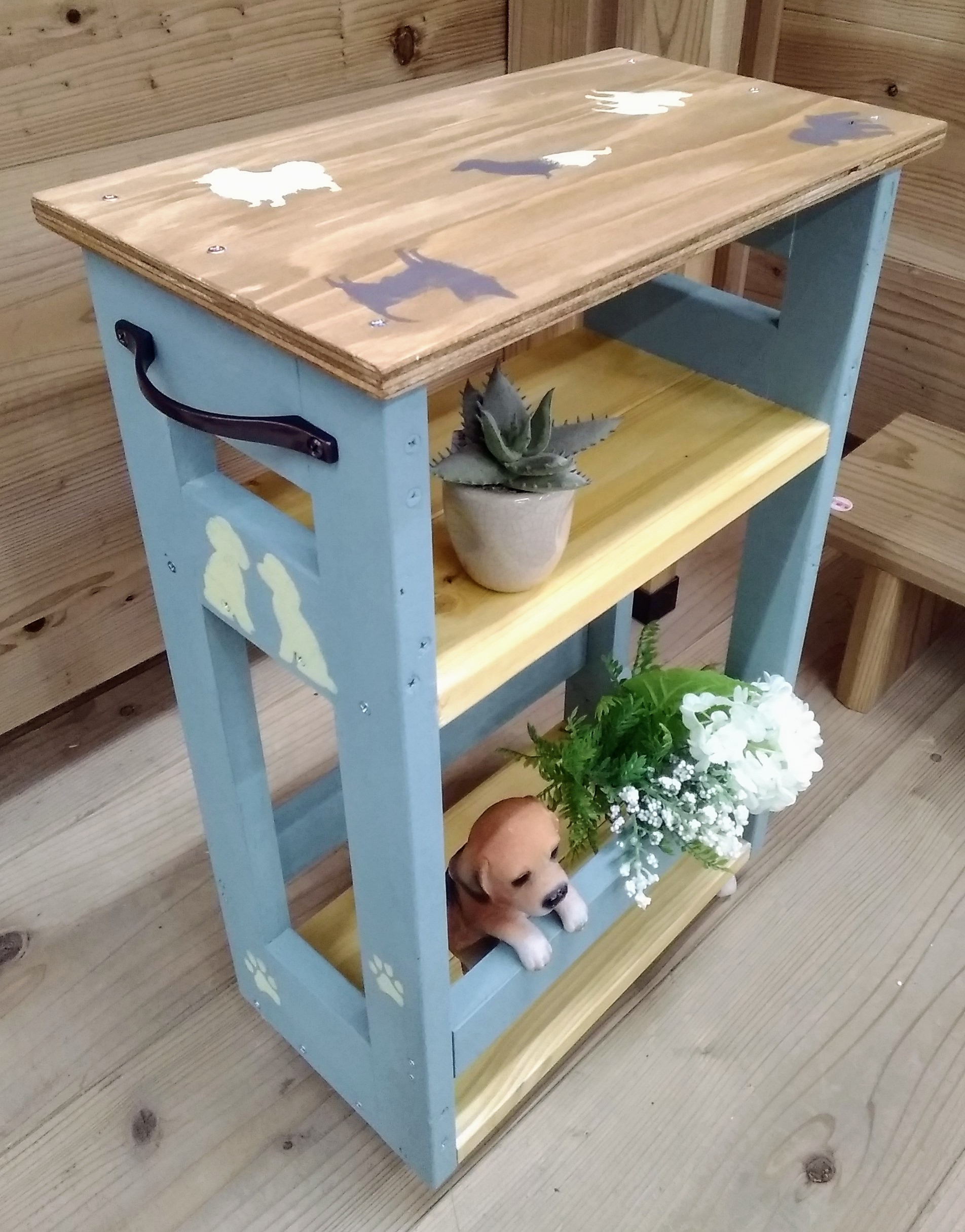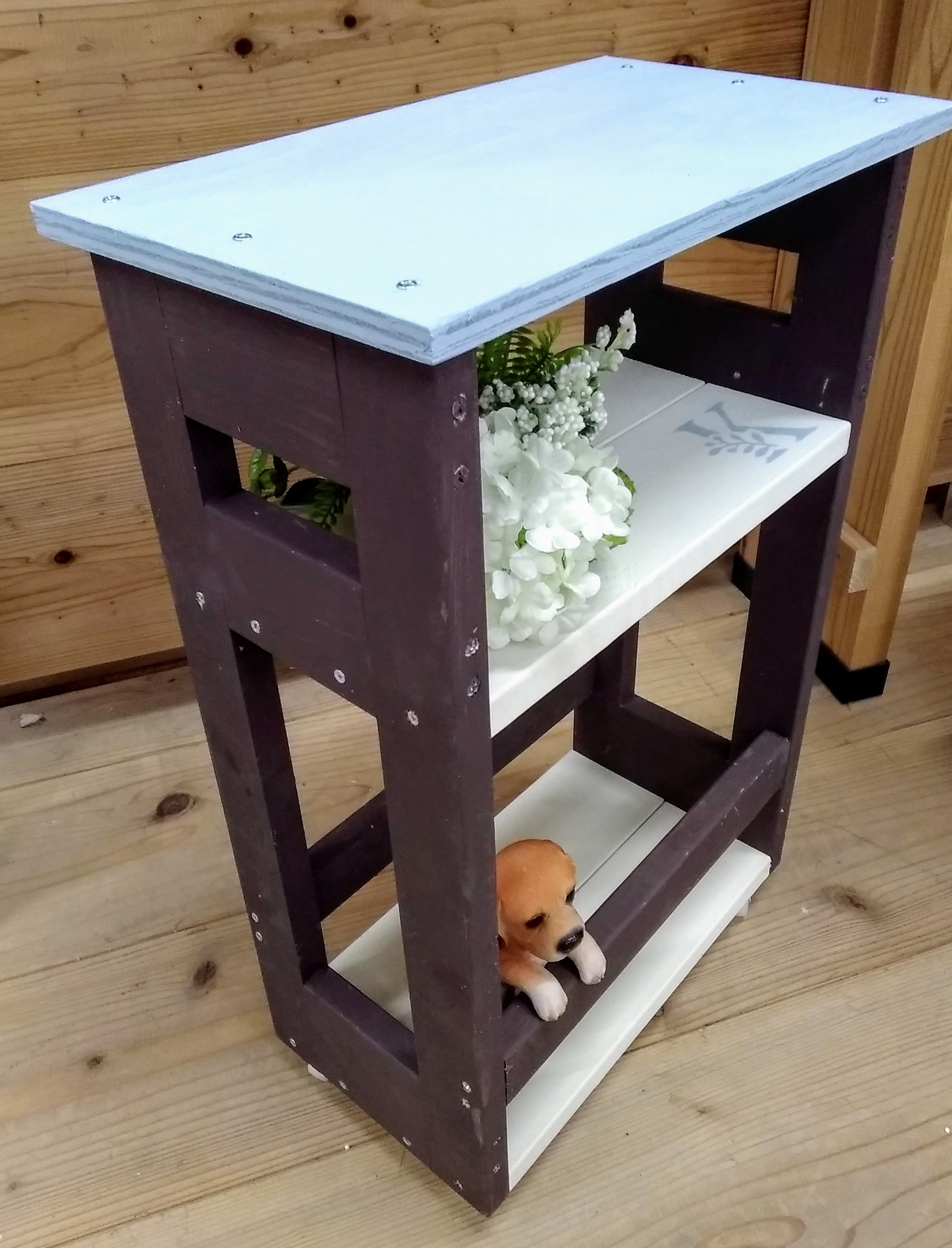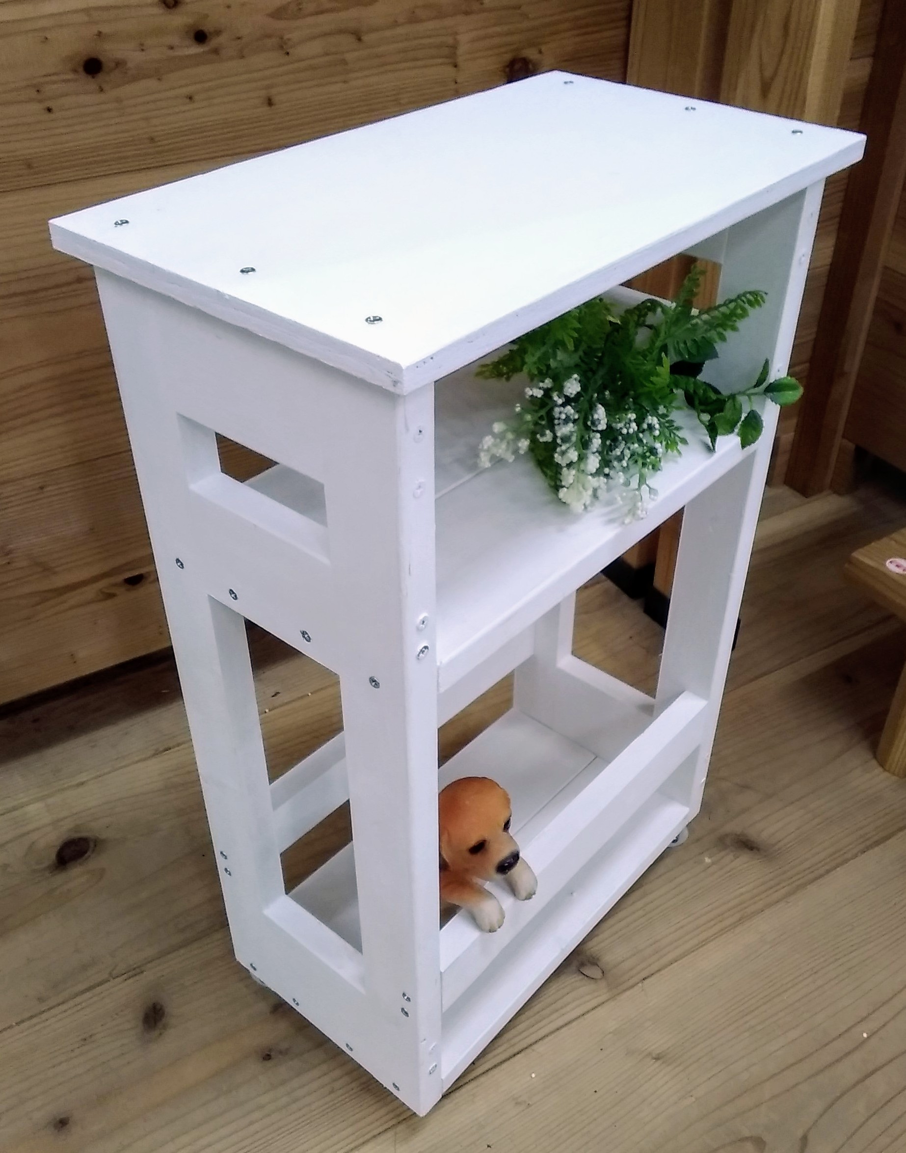 【午前1回の開催です】カット済みの木材を電動工具で組み立て、木部保護塗料でペイントします。花台部分と壁面へ花や雑貨と併せて飾ったり、目隠しとしても活躍します。