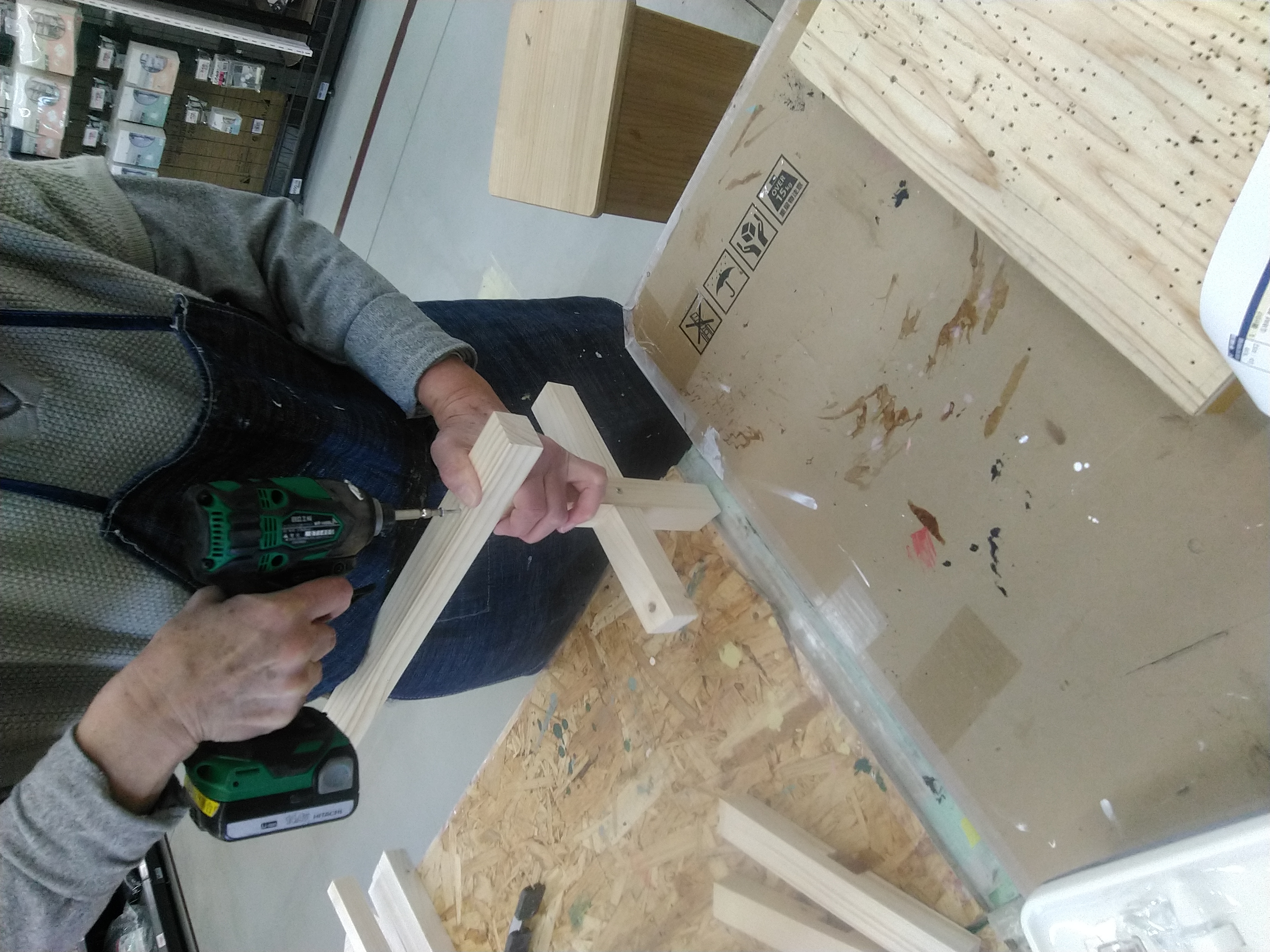 カット済みの木材を電動工具で組み立て、木材を長持ちさせる屋外用水性塗料でペイントします。イスの座面部分はたっぷり花苗を寄せ植えできるサイズなので、お庭の主役になる作品です。鉢花だけでなく、多肉植物や観葉植物など活用方法は様々!色の組み合わせで表情も変わりますので、ご自宅のお庭の雰囲気に合わせてみてはいかがでしょうか。