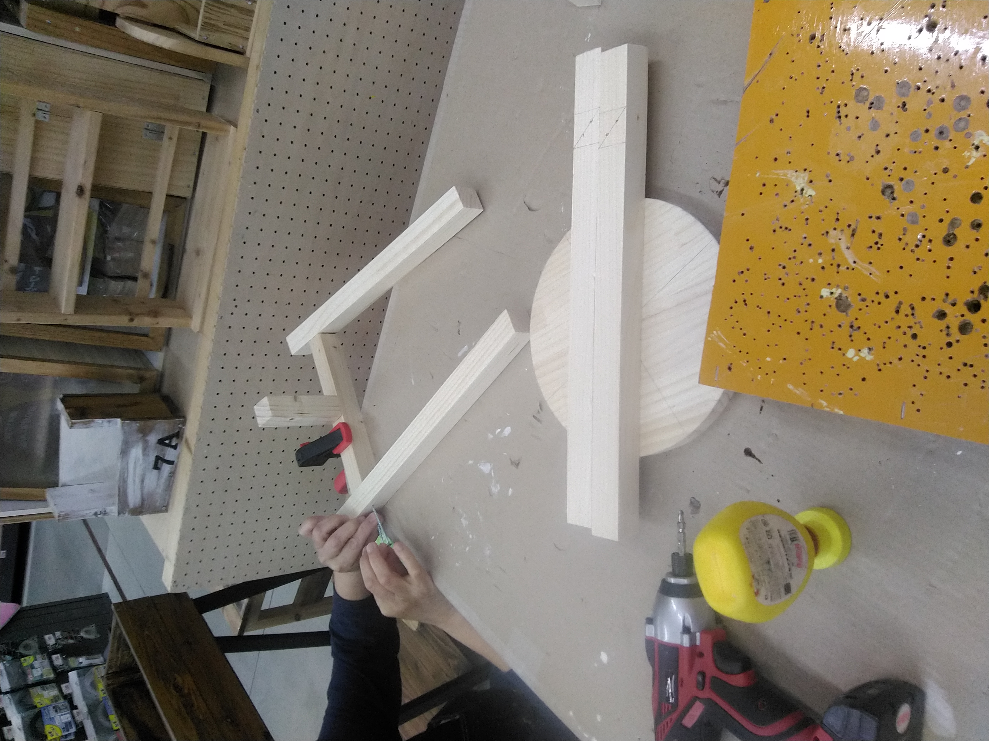カット済みの木材を電動工具で組み立て、引き出しをペイントします。キッチンやディスプレイにぴったりな置くものに合わせて幅が変えられる収納棚です。