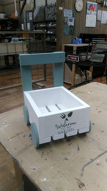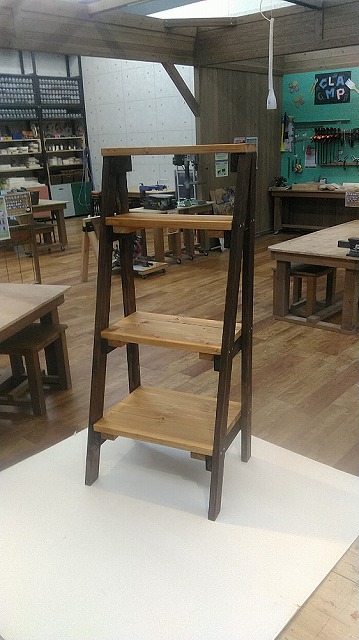カット済みの木材を電動工具で組み立て、ワックスでペイントします。持ち運びに便利な持ち手付きです。開いたまま見せる収納として使ってもおしゃれなスパイスBOXです。丁番の上手な付け方や、掛け金の取付方法を学ぶことができます。