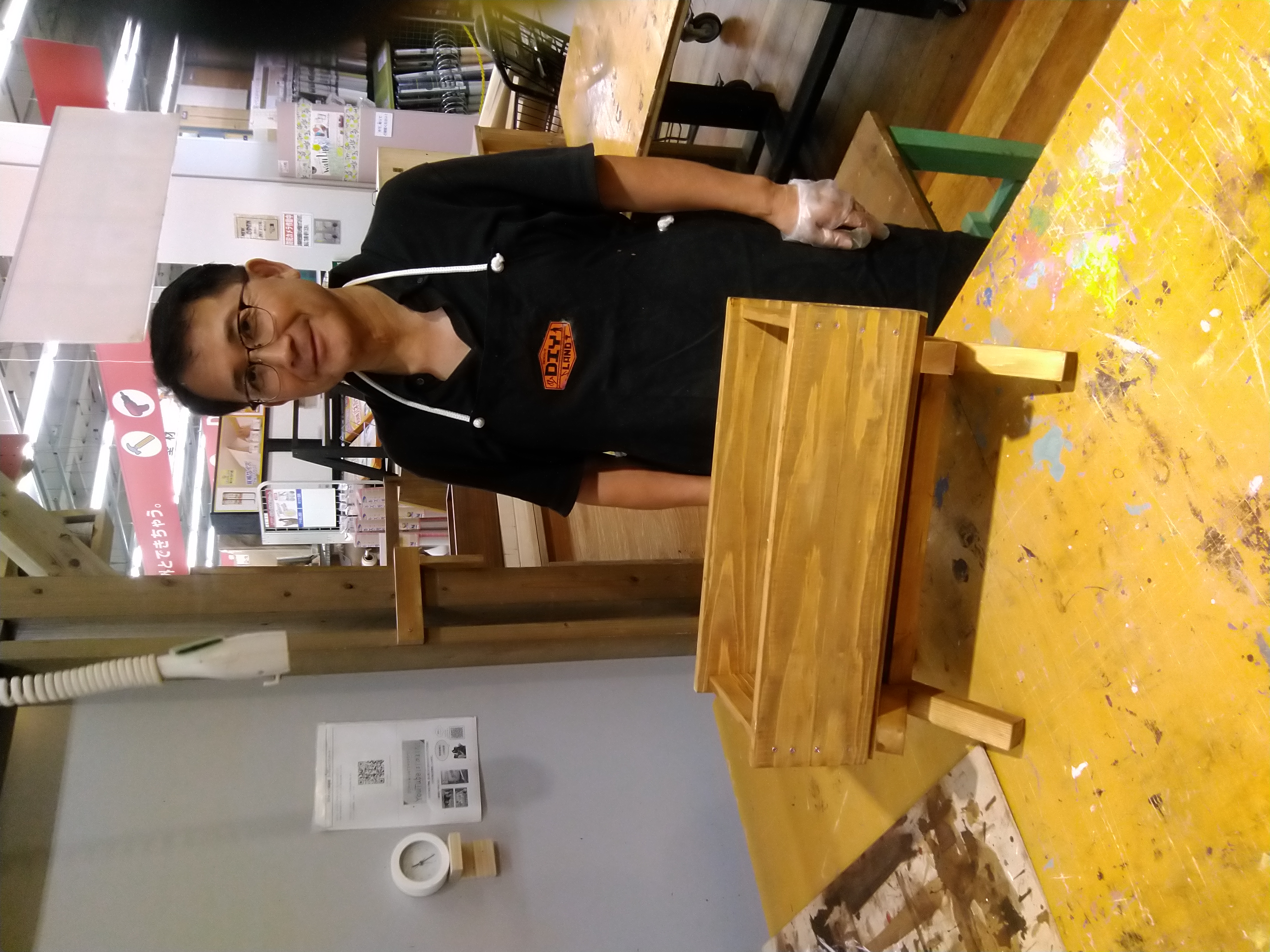 【午前1回の開催です】カット済みの木材を電動工具で組み立て、ワックスと水性塗料でペイントし、ステンシルで仕上げます。防災用品や園芸用品など収納力抜群!玄関先で荷物を置いたり、軽く腰掛けたり、収納もできる実用性の高い作品です。ちょっとしたコツが必要な”蝶番”の取り付け方も学べます。