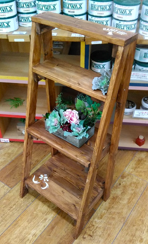 カット済みの木材を電動工具で組み立て、水性塗料などで塗装します。小物置きや鉢台など、飾り棚として使える小型のベンチです。鉢花だけでなく、多肉植物や観葉植物など使い方は様々!お庭のアクセントにいかがですか?