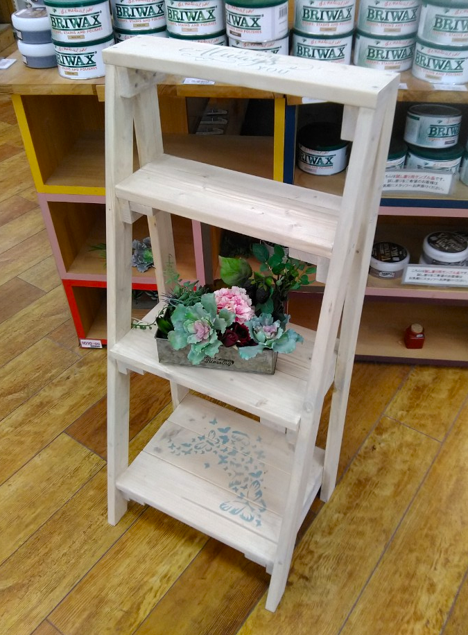 【午前1回の開催です】カット済みの木材を電動工具で組み立て、水性塗料でペイントします。棚板が4段あるので、一度にたくさん収納できます。本や雑貨、植物、コレクションのディスプレイ・収納にいかがですか。サイズの大きな作品なので、完成した後の達成感もひとしおです♪前脚の斜めカットや下穴開け作業がございます。