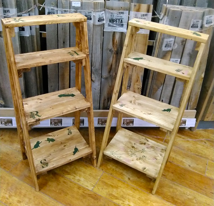 座面が丸く、さまざまな場所に合う作品です。スツールとしてだけでなく、ぬいぐるみや植物を置いてお部屋に飾っても◎電動ドライバーの使い方やダボ加工、塗装といろんな工程を学ぶことができる、DIYのスキルアップとしても人気のメニューです。