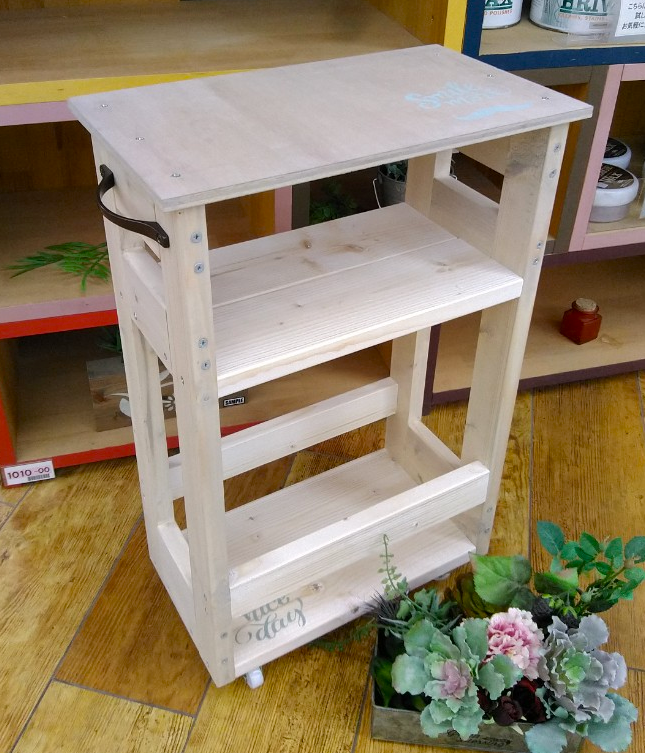 キッチンや洗面所で活躍するスリムタイプのワゴンです。水性塗料やワックスでお部屋に合う色に仕上げることができます。出し入れに便利な前後に動くキャスター付きです。設置する場所にスリムワゴンを置いた状態を想定しておくのがおすすめです♪