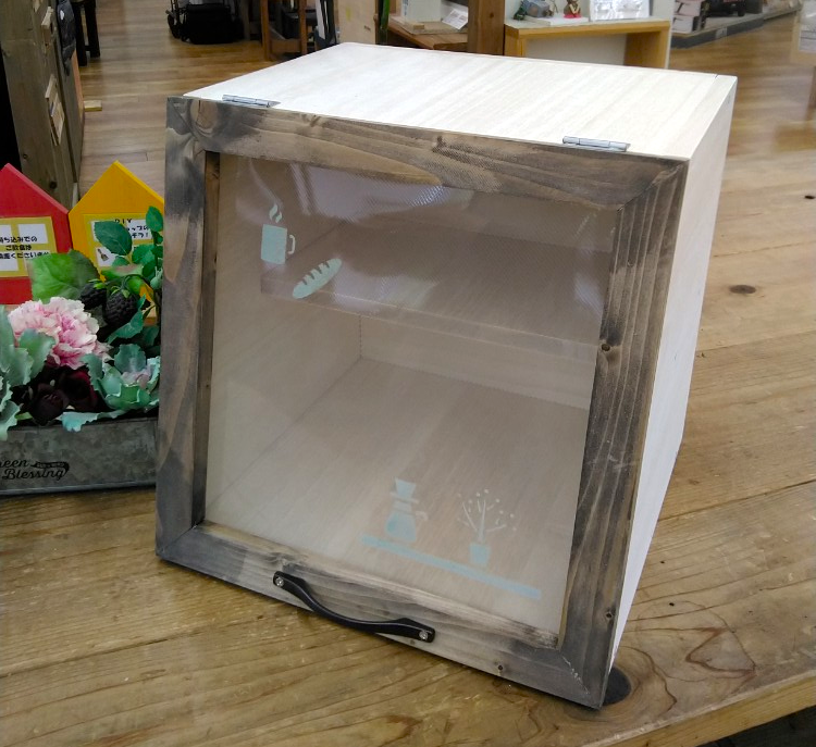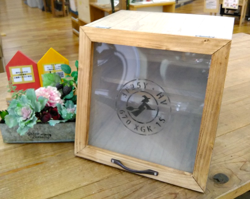 カット済みの木材を電動工具で組み立て、ワックスと水性塗料でペイントし、ステンシルで仕上げます。防災用品や園芸用品など収納力抜群!玄関先で荷物を置いたり、軽く腰掛けたり、収納もできる実用性の高い作品です。ちょっとしたコツが必要な”蝶番”の取り付け方も学べます。