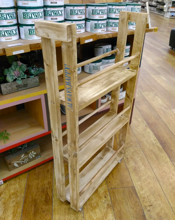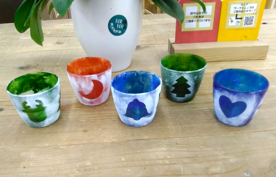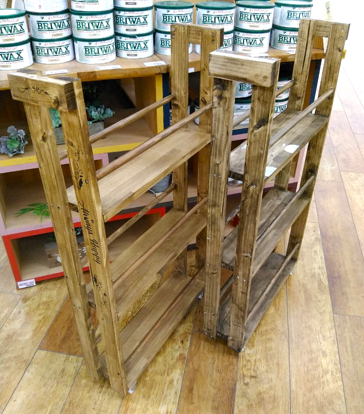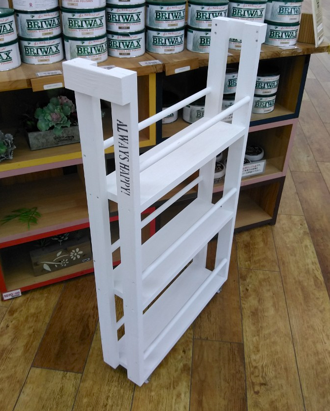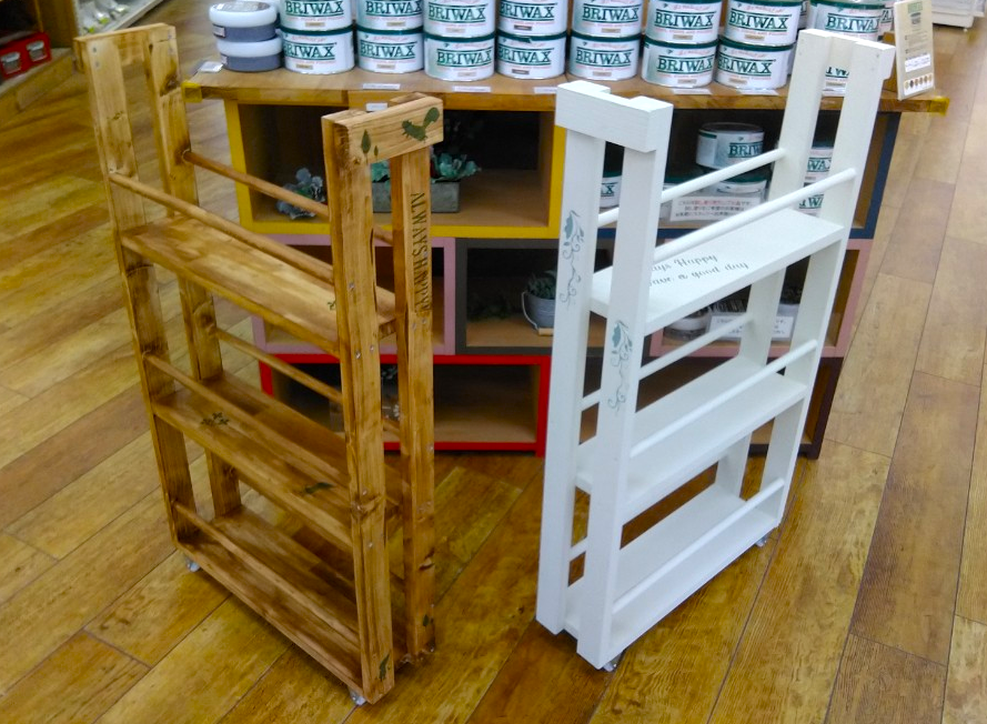 カット済みの木材を電動工具で組み立て、水性塗料やワックスなどでペイントします。小さめの観葉植物や多肉植物のディスプレイにおすすめの作品です。それぞれのボックスは取り外して持ち運べるので、お手入れや入れ替えも便利です。