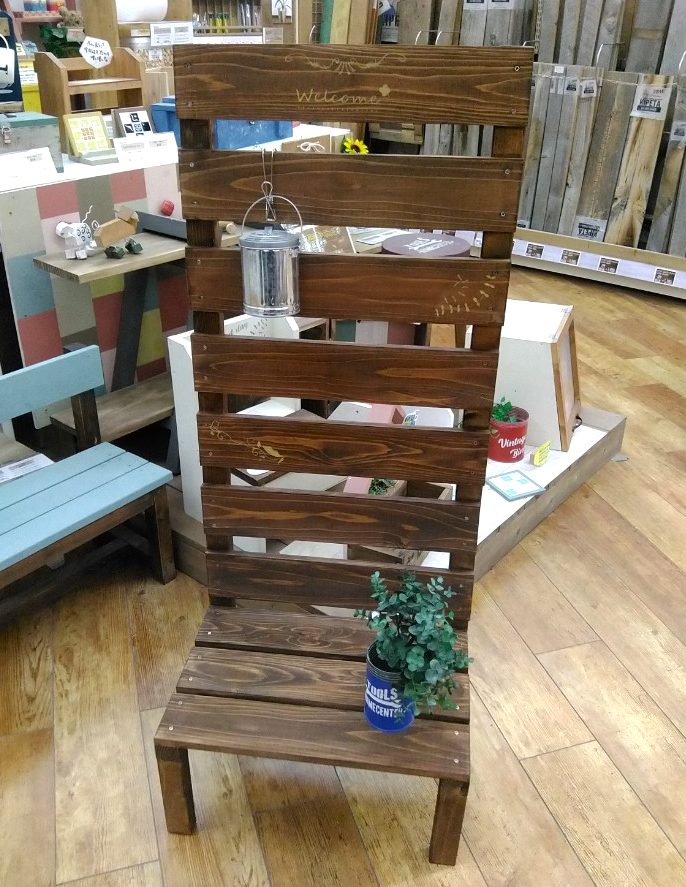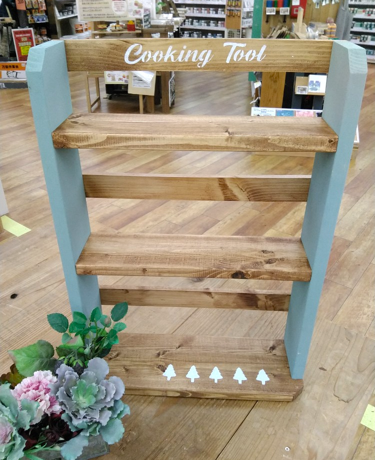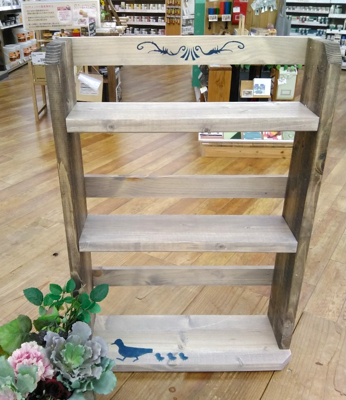 カット済みの木材を電動工具で組み立て、ワックスと水性塗料でペイントし、ステンシルで仕上げます。防災用品や園芸用品など収納力抜群!玄関先で荷物を置いたり、軽く腰掛けたり、収納もできる実用性の高い作品です。ちょっとしたコツが必要な”蝶番”の取り付け方も学べます。