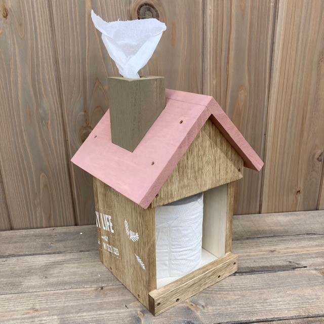 カット済みの木材を電動工具で組み立て、水性塗料やワックスでペイントします。ペットのお世話でも活躍するトイレットペーパーを目隠しして使えます。煙突部分からペーパーが取り出せる仕様でリビングに置いていても可愛くて目立つこと間違いありません!