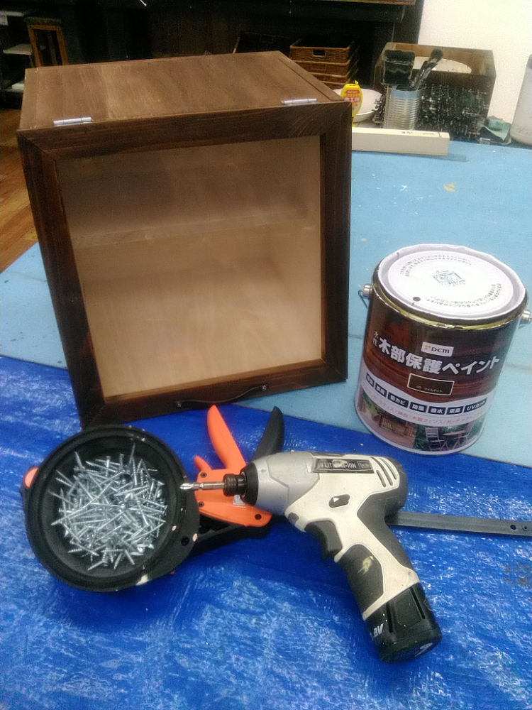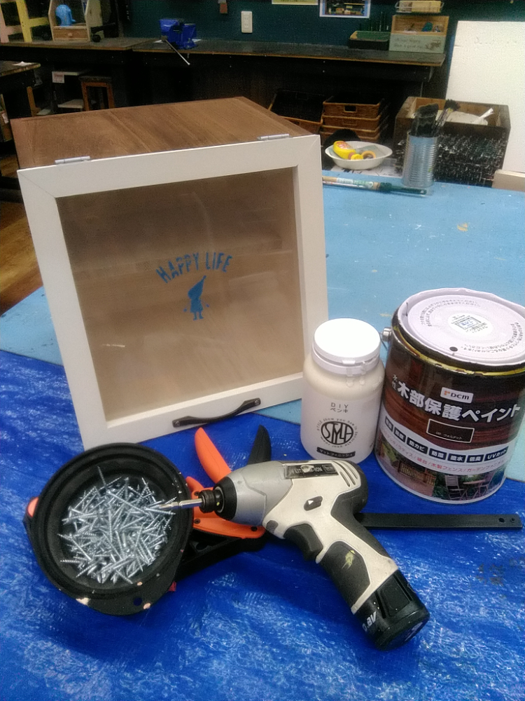 カット済みの木材を電動工具で組み立て、水性塗料でペイントします。カフェ風の屋根がポイントです。リビングやキッチン、お子さまのおままごとにもピッタリの棚を一緒に作りましょう。