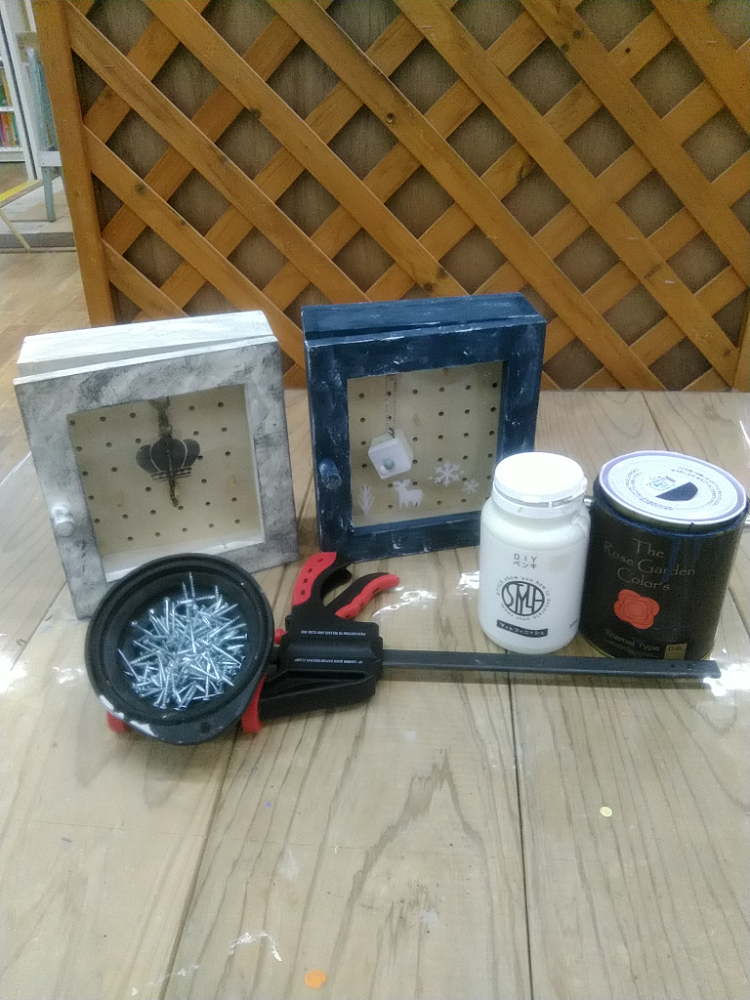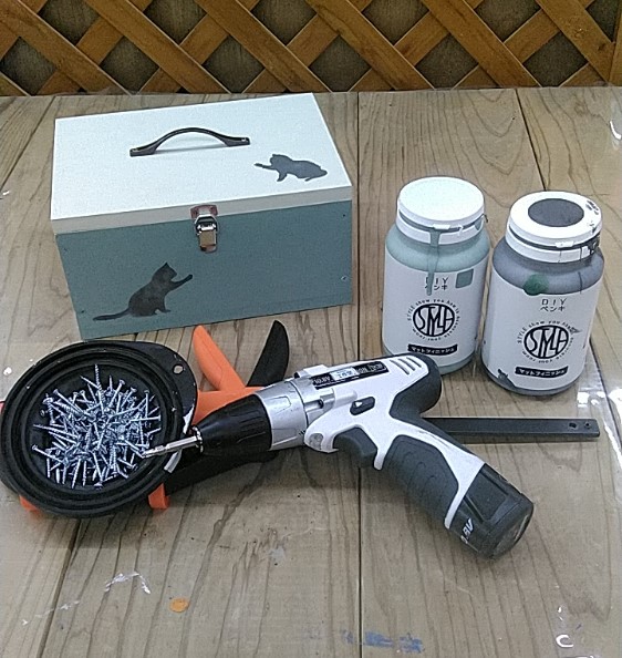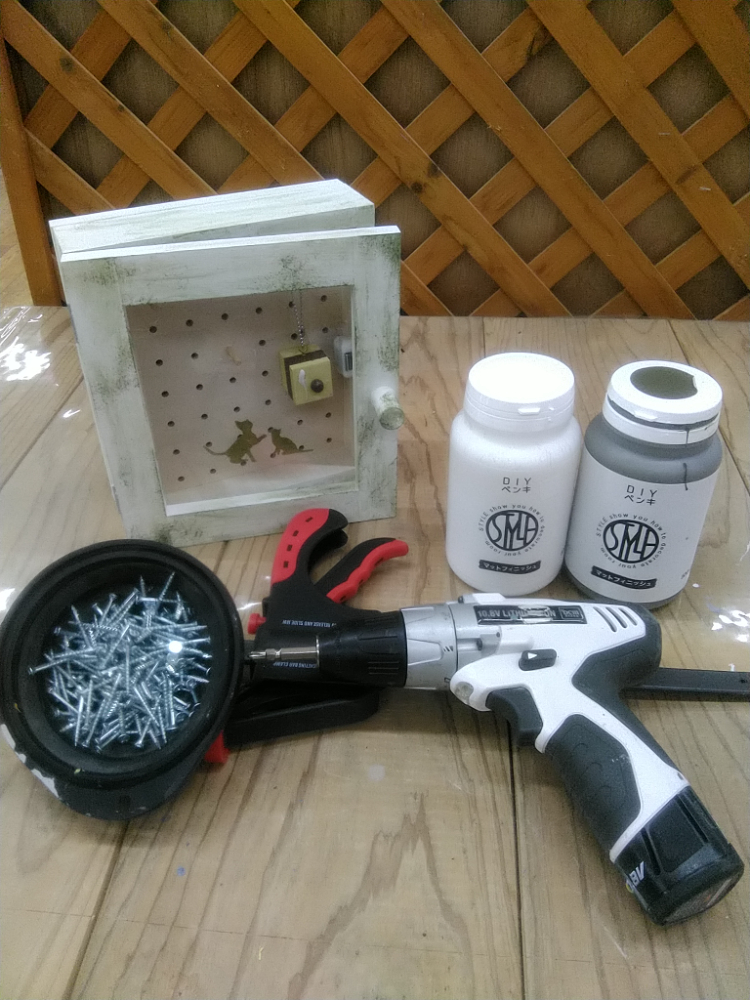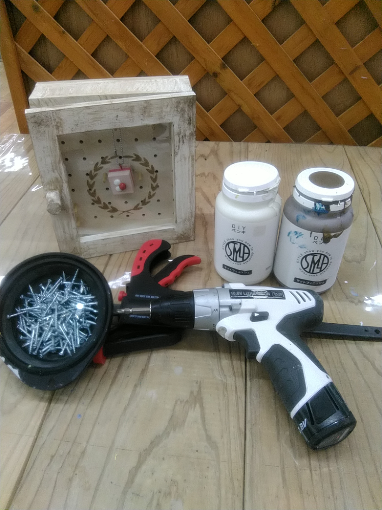 カット済みの木材を電動工具で組み立て、ワックスや水性塗料でペイントします。日常的に使うゴミ箱をオシャレかつ便利にDIY!塗装やステンシル次第で、キッチンにも子供部屋にもなじむ作品です。ゴミ袋を押さえるための木枠も取り付け可能です。