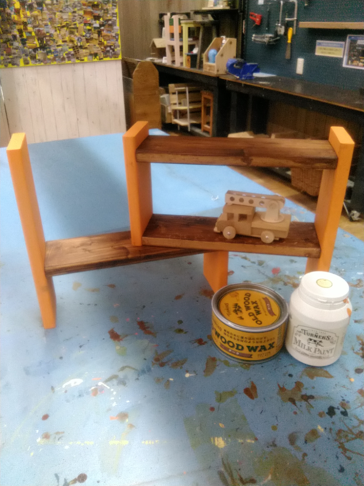 カット済みのイレクターパイプを組み立て、水性塗料やワックスで塗装します。こちらのメニューはイレクターパイプにも塗装ができるので、ご自宅の家具に合わせて作れるのも嬉しいポイント!重さも木材で作成するより軽く、さらにキャスター付きで女性でも楽に移動ができます。