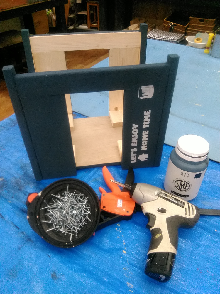 カット済みの木材を電動工具で組み立て、水性塗料でペイントします。自分だけのキャンディボックスを作ろう♪