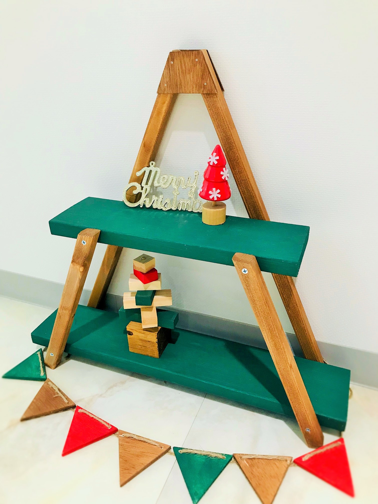 カット済みの木材を電動工具で組立てて、水性塗料でペイントします。ツリー型のラックに自分だけのクリスマスの飾りつけをしてみませんか?