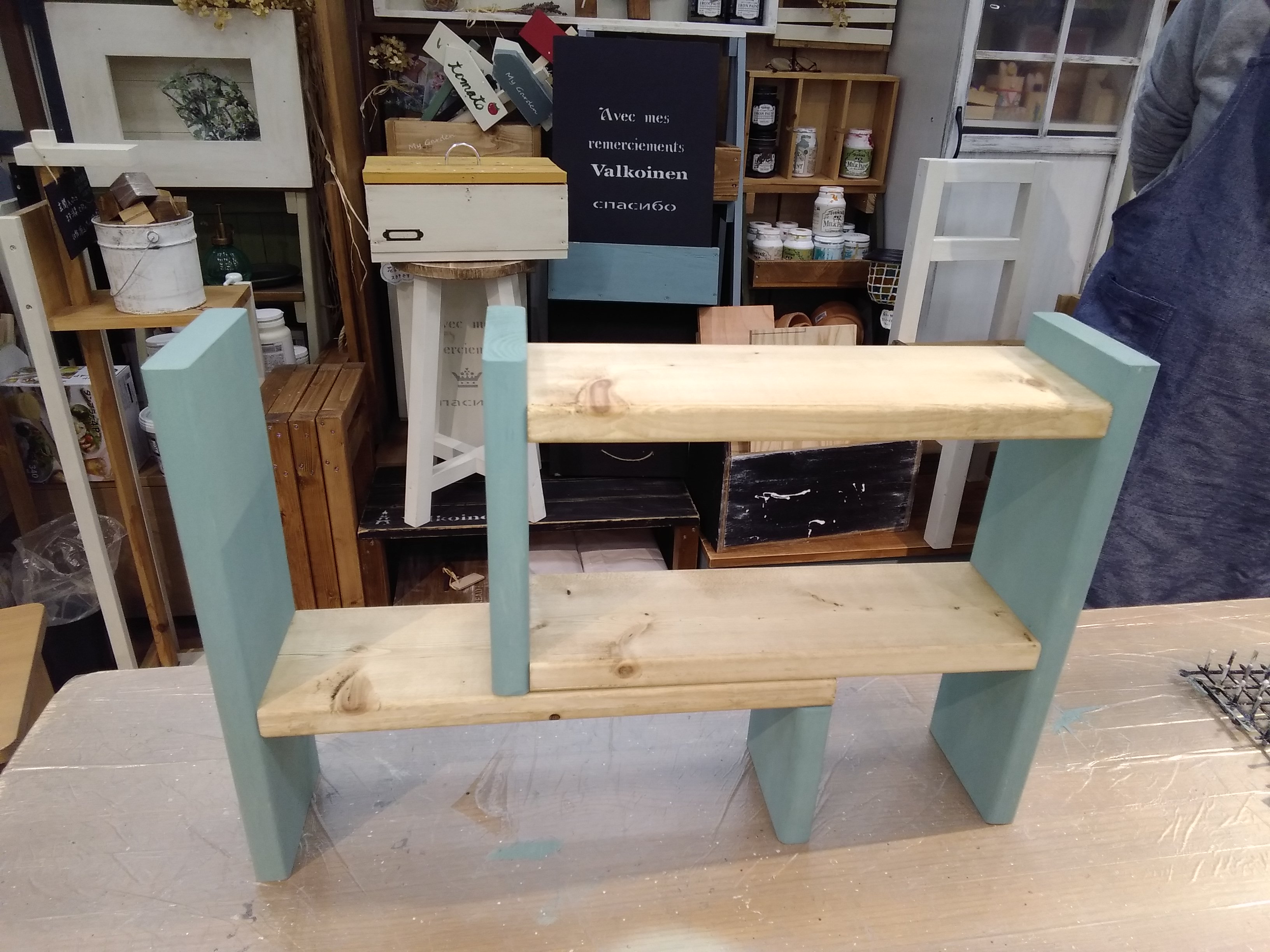 【最縮時の幅は330mm】カット済みの木材を電動工具で組み立て、ワックスでペイントして仕上げます。本の量に合わせて伸縮できる、大人・子どもどちらにも人気のメニューです。冬休みの工作にも、普段使いとしてもおすすめです。