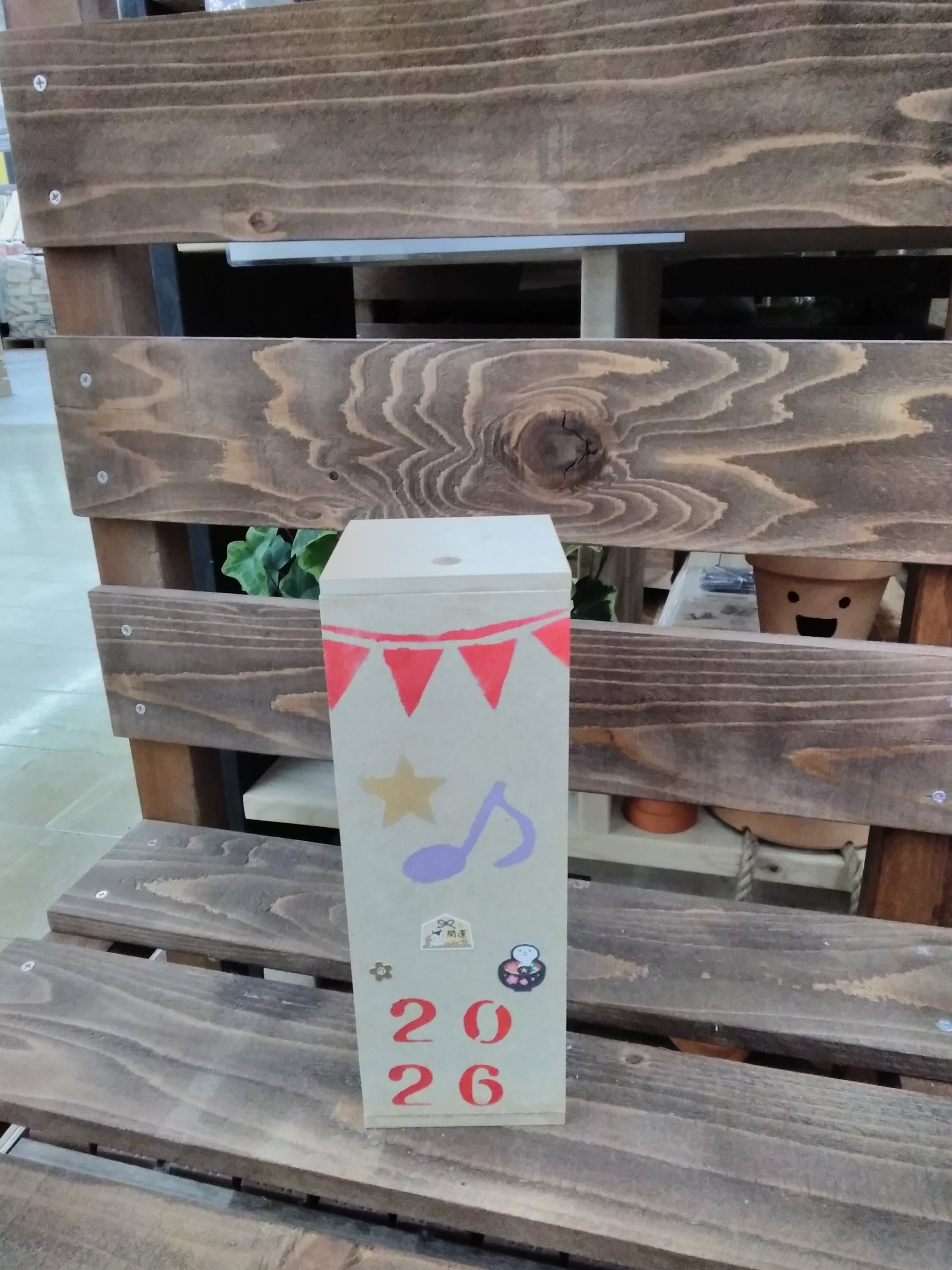 作業時間120分の初心者から中級者向けのメニューです。カット済みの木材を電動工具で組み立て、水性塗料でペイントします。草花を立体的な絵画のように縁取って楽しめるプランターです。(※参加費に植物は含まれません)