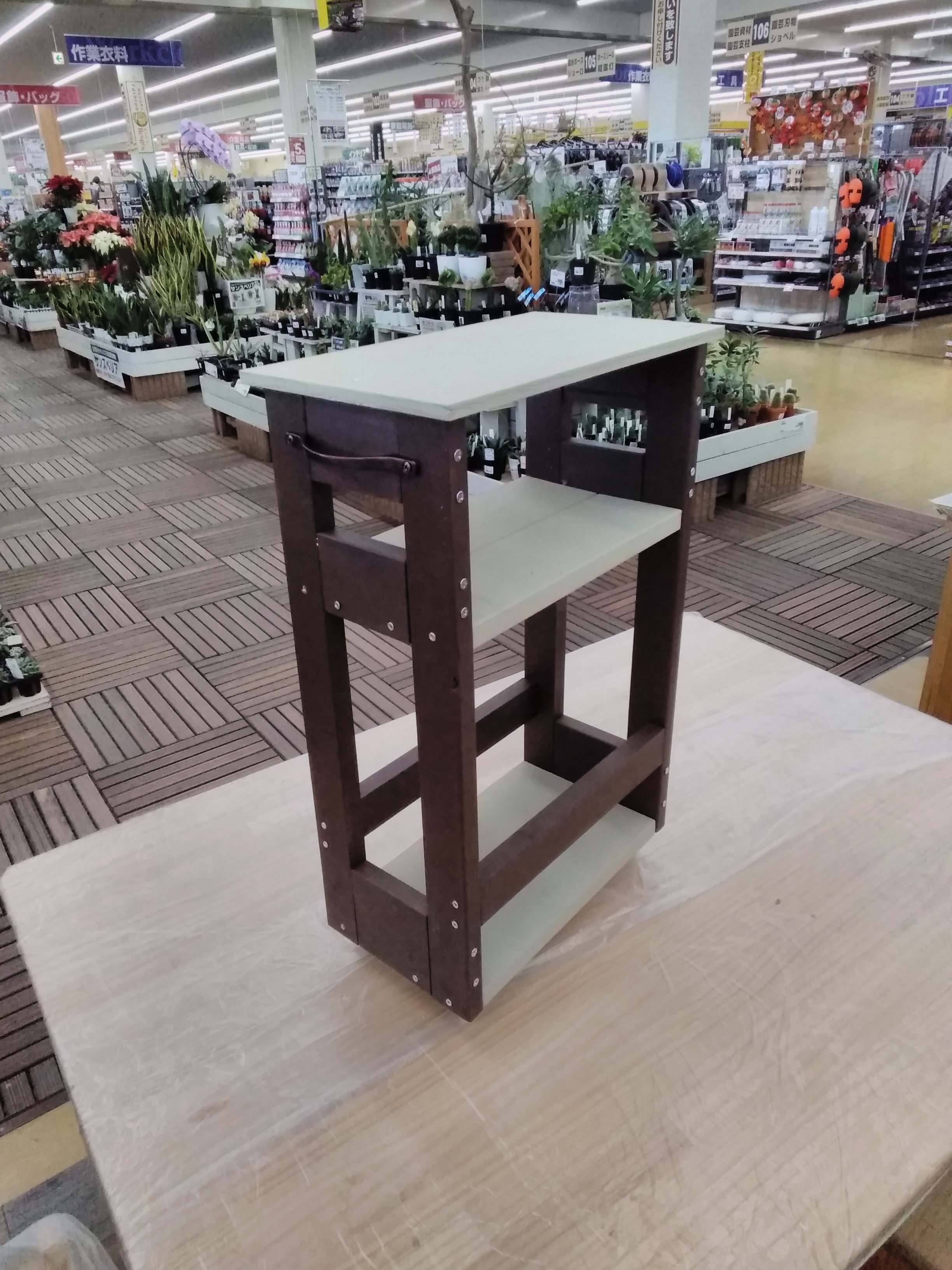 【午前1回の開催です】【参加費に植物は含まれません。45型プランター対応】カット済みの木材を電動工具で組み立て、木部保護塗料でペイントします。目線近くでお花が眺められ、腰をかがめずお世話もラクにできます。お花やハーブ、葉野菜など植えてみませんか?植物の楽しみ方が広がる棚付きです。
