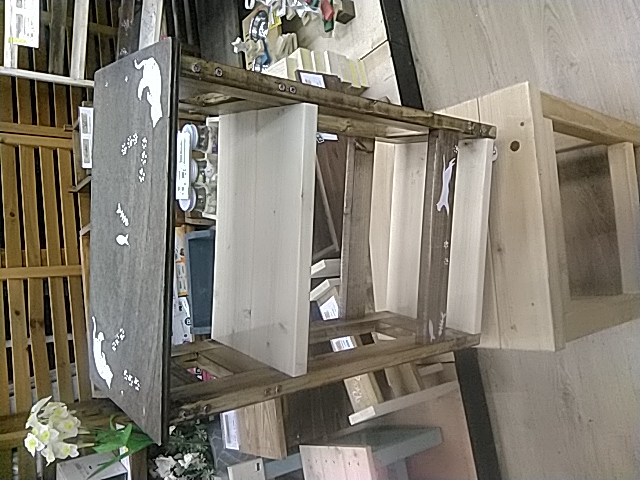 カット済みの木材を電動工具で組み立て、ワックスと水性塗料でペイントし、ステンシルで仕上げます。防災用品や園芸用品など収納力抜群!玄関先で荷物を置いたり、軽く腰掛けたり、収納もできる実用性の高い作品です。ちょっとしたコツが必要な”蝶番”の取り付け方も学べます。