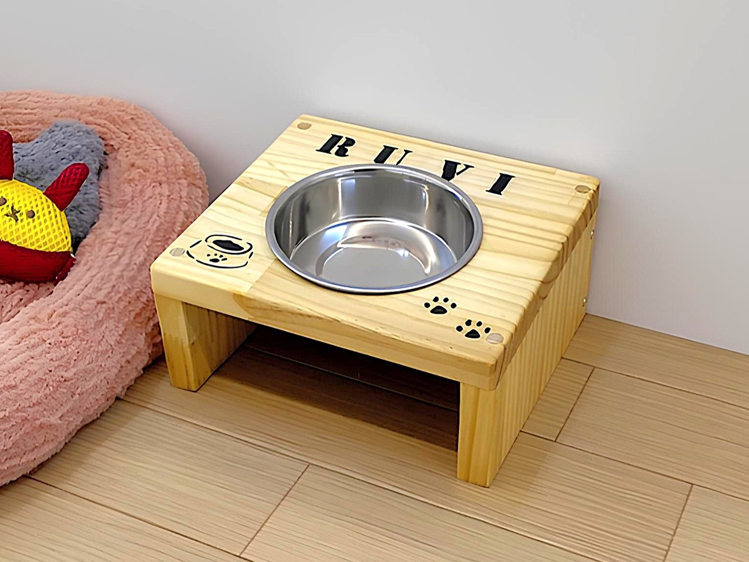 【午前1回の開催です】【ステンレス製食器付き(猫ちゃん用の食器を希望の方は店舗までお電話にてご連絡ください)】天面ダボ仕上げと自然由来の塗料「荏油(=エゴマ油)」を使ったこだわりの仕上がりです。