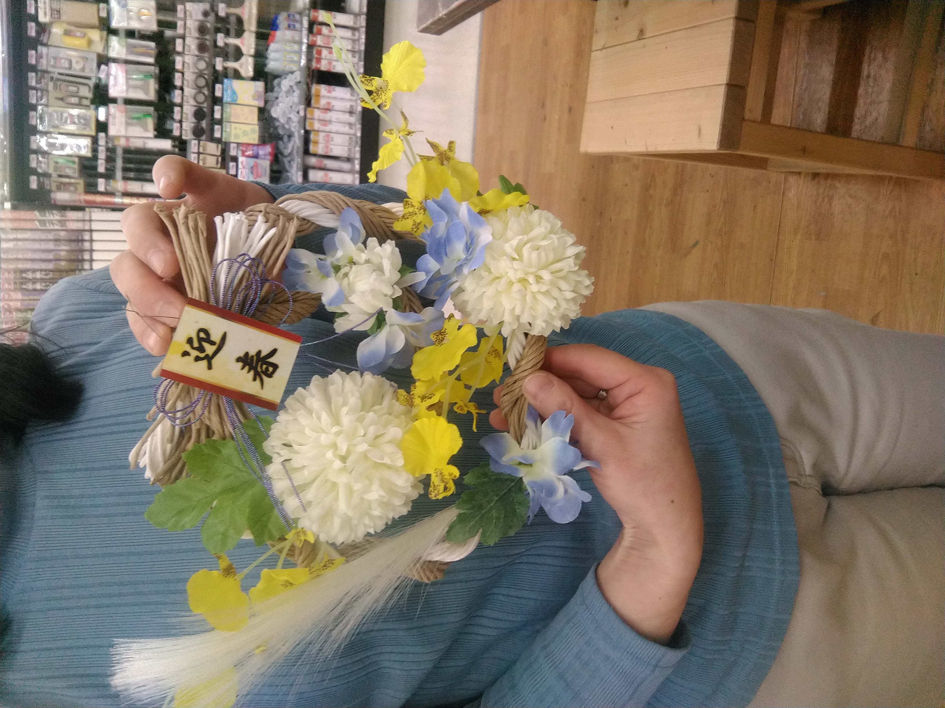 【造花代が別途かかります。作成する形によりサイズは異なります】自分でより合わせた紙紐を、円やリボン型など好きな形に整え、グルーガンで飾りを付けましょう。手作りの正月飾りで新年を迎えませんか?