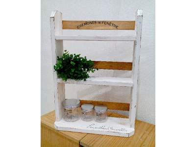 【午前1回の開催です】カット済みの木材を電動工具で組み立て、水性塗料またはワックスでペイントして仕上げます。調味料の収納や小物棚としても活躍する、使い勝手のいいラックです。