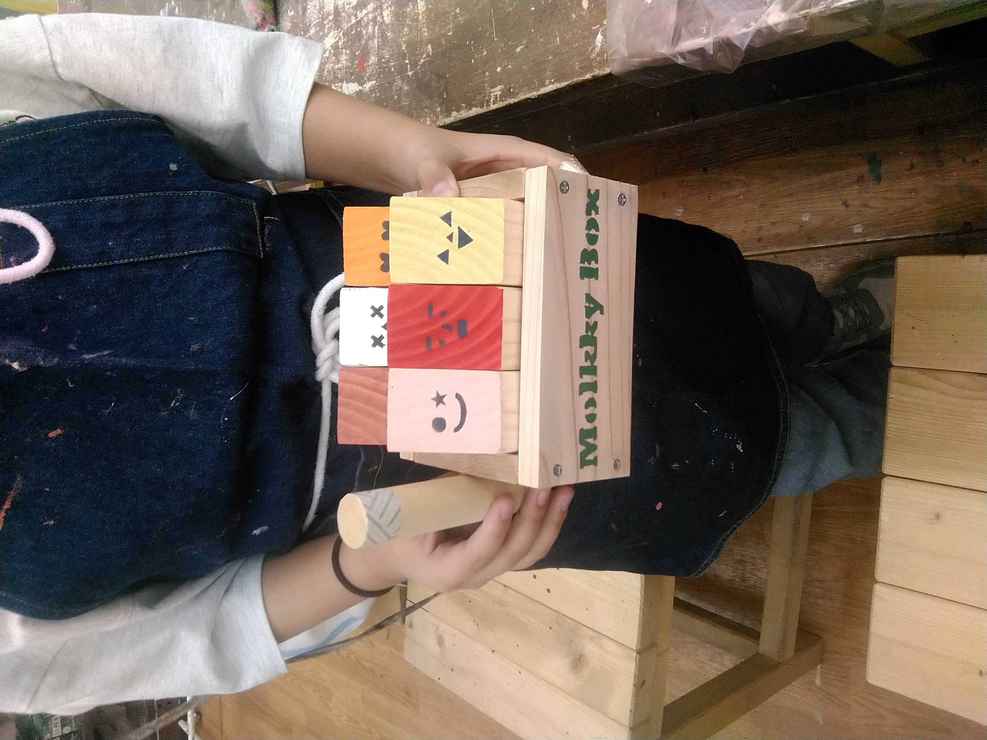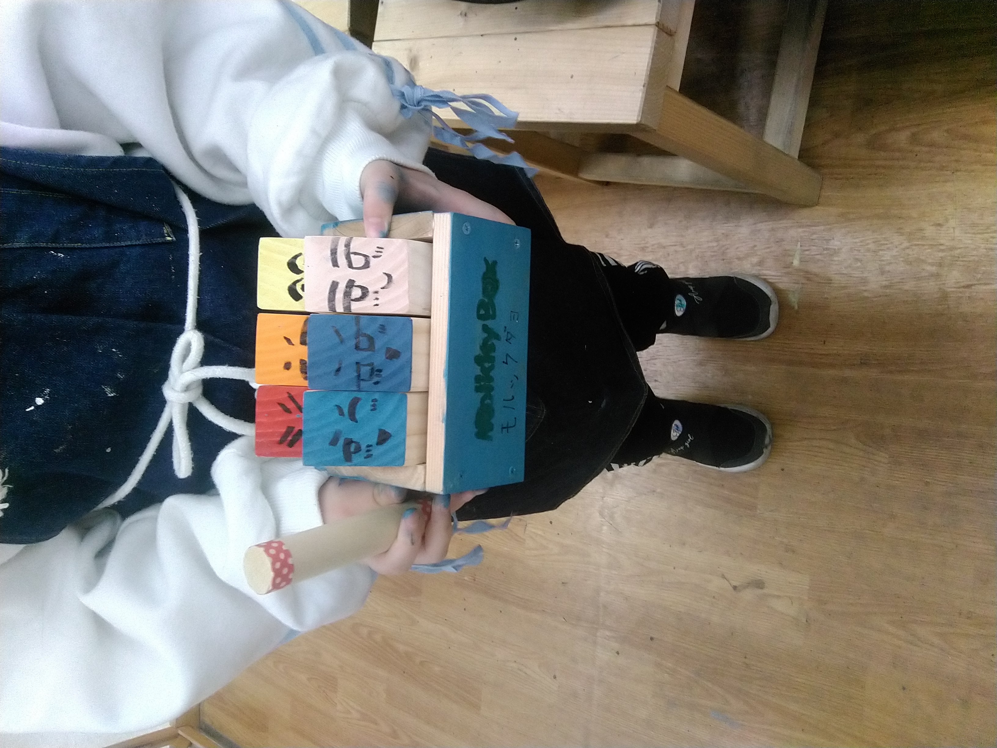 (無塗装での完成となります。)木工用接着剤を使って組み立てた後、釘を打って完成です。おうちで色を塗ったり、イラストを描いて仕上げてください。