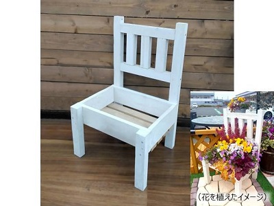 カット済みの木材を電動工具で組み立て、木材を長持ちさせる屋外用水性塗料でペイントします。イスの座面部分はたっぷり花苗を寄せ植えできるサイズなので、お庭の主役になる作品です。鉢花だけでなく、多肉植物や観葉植物など活用方法は様々!色の組み合わせで表情も変わりますので、ご自宅のお庭の雰囲気に合わせてみてはいかがでしょうか。