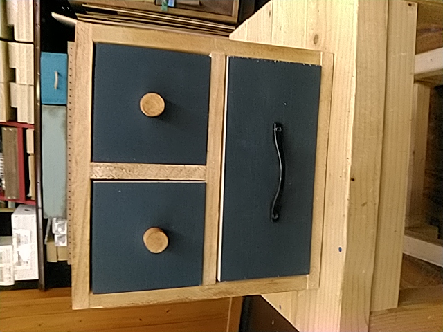 カット済みの木材を電動工具で組み立て、ワックスと水性塗料でペイントし、ステンシルで仕上げます。防災用品や園芸用品など収納力抜群!玄関先で荷物を置いたり、軽く腰掛けたり、収納もできる実用性の高い作品です。ちょっとしたコツが必要な”蝶番”の取り付け方も学べます。