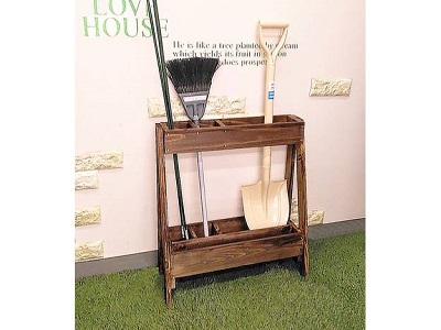 【午前1回の開催です】カット済みの木材を電動工具で組み立て、木部保護塗料でペイントします。スコップやほうき・支柱などの細長いものが立てられ、散乱しがちな園芸用品をスッキリ収納できます。奥行もスリムにし、場所を取りにくいサイズで作りました。