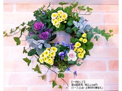 【苗代が別途かかります。当日は植物の生育・仕入れの状況に合った苗をご用意します。】ワイヤーネットを使ってリース土台を作り、季節の花苗で寄せ植えリースを作ります。