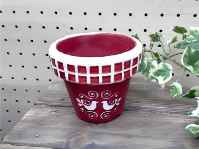 素焼き鉢を水性塗料でペイントし、ステンシルやタイルでデコレーションしましょう。※寄せ植えはございません。
