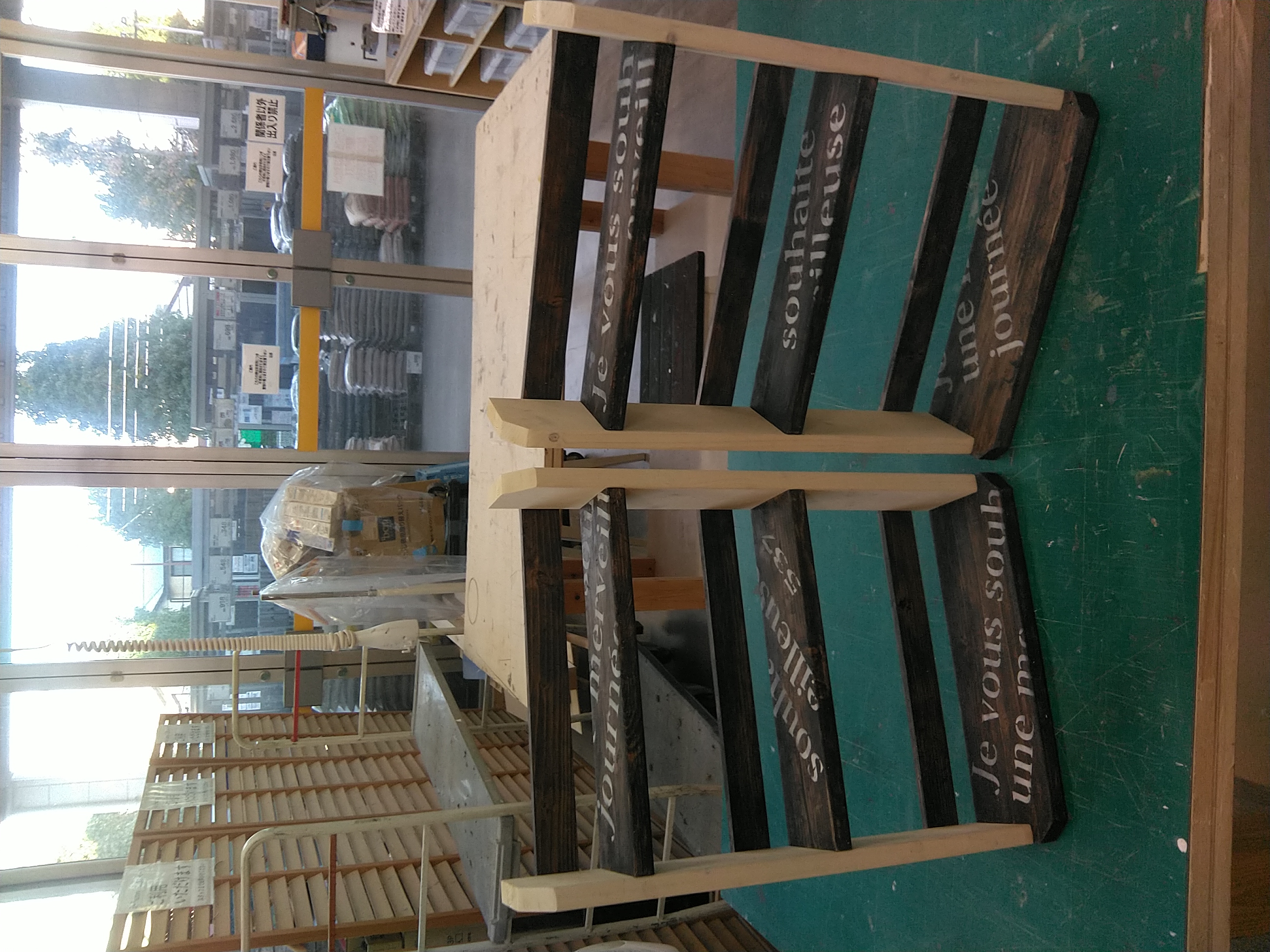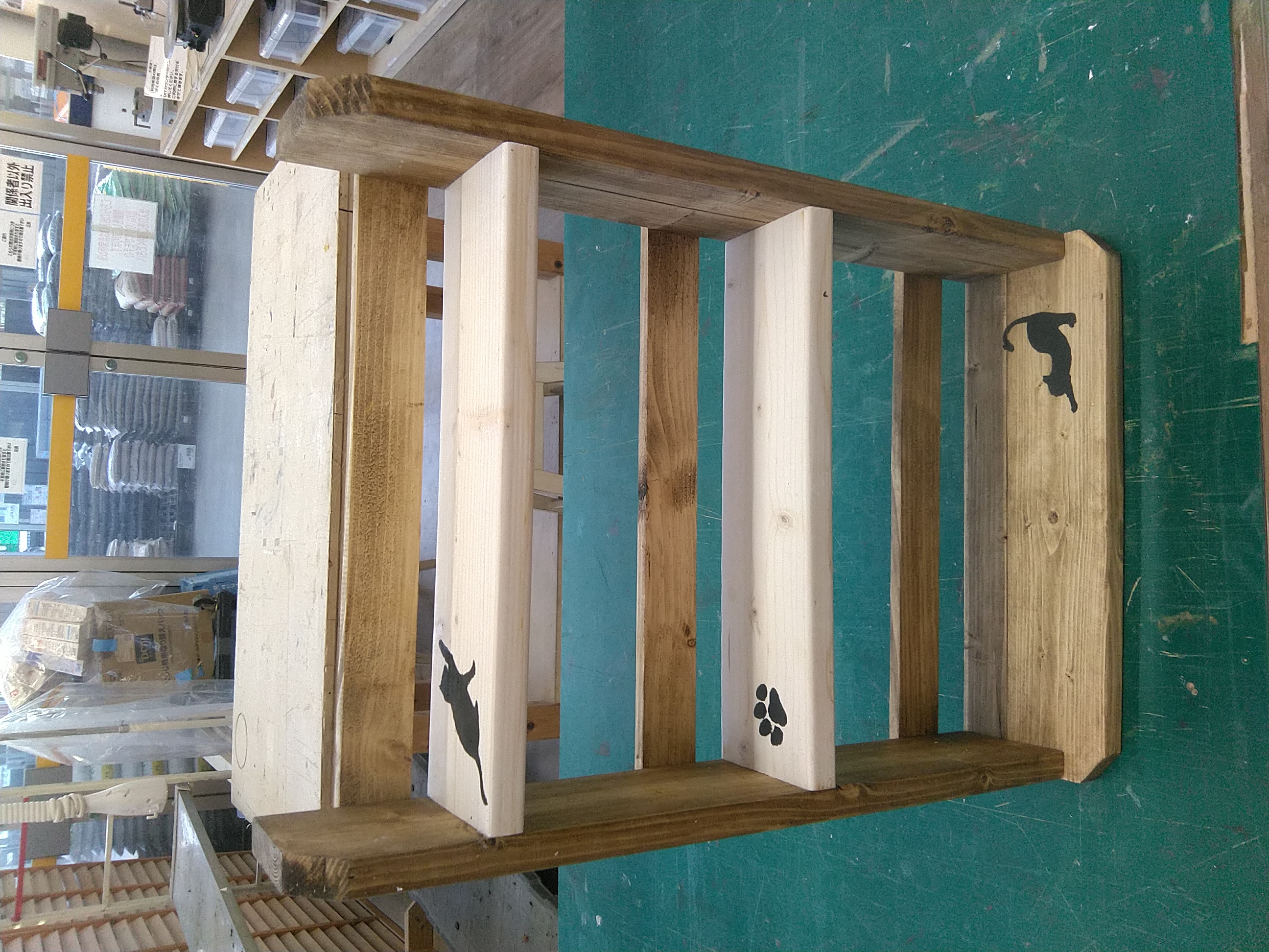カット済みの木材を電動工具で組み立て、水性塗料などで塗装します。小物置きや鉢台など、飾り棚として使える小型のベンチです。鉢花だけでなく、多肉植物や観葉植物など使い方は様々!お庭のアクセントにいかがですか?