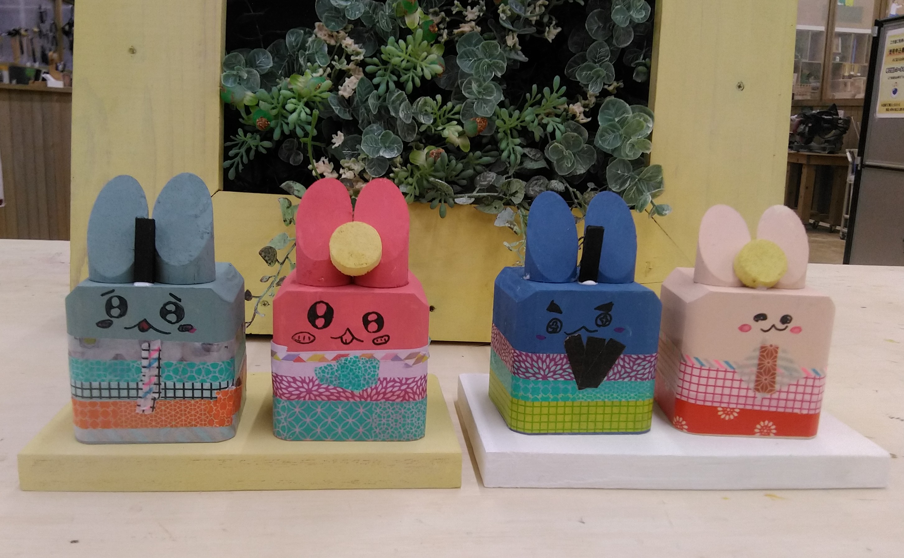 座面が丸く、さまざまな場所に合う作品です。スツールとしてだけでなく、ぬいぐるみや植物を置いてお部屋に飾っても◎電動ドライバーの使い方やダボ加工、塗装といろんな工程を学ぶことができる、DIYのスキルアップとしても人気のメニューです。